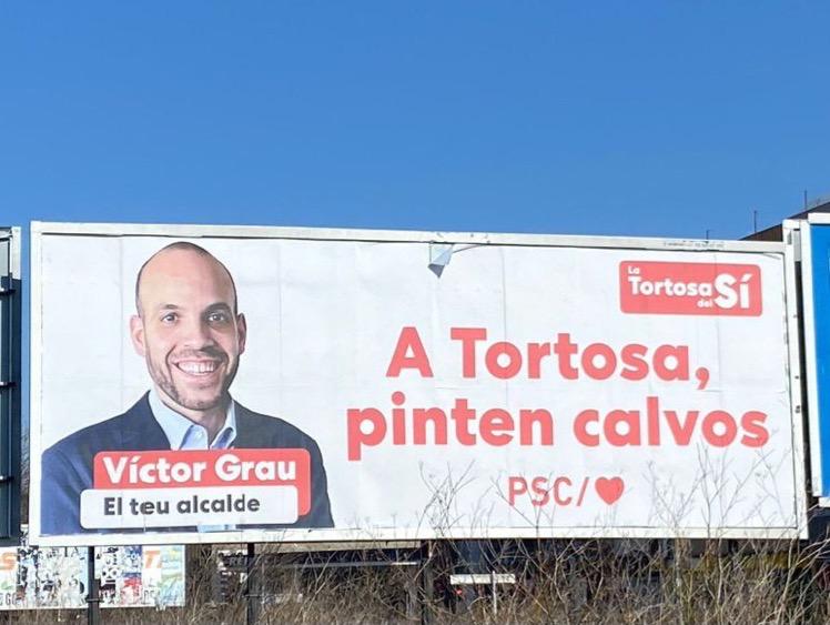 Esto ya es la última vuelta de tuerca. Hay tanto ingenio en el cartel que desborda. Si no pintan bastos, pues que "pinten calvos" para Tortosa.
