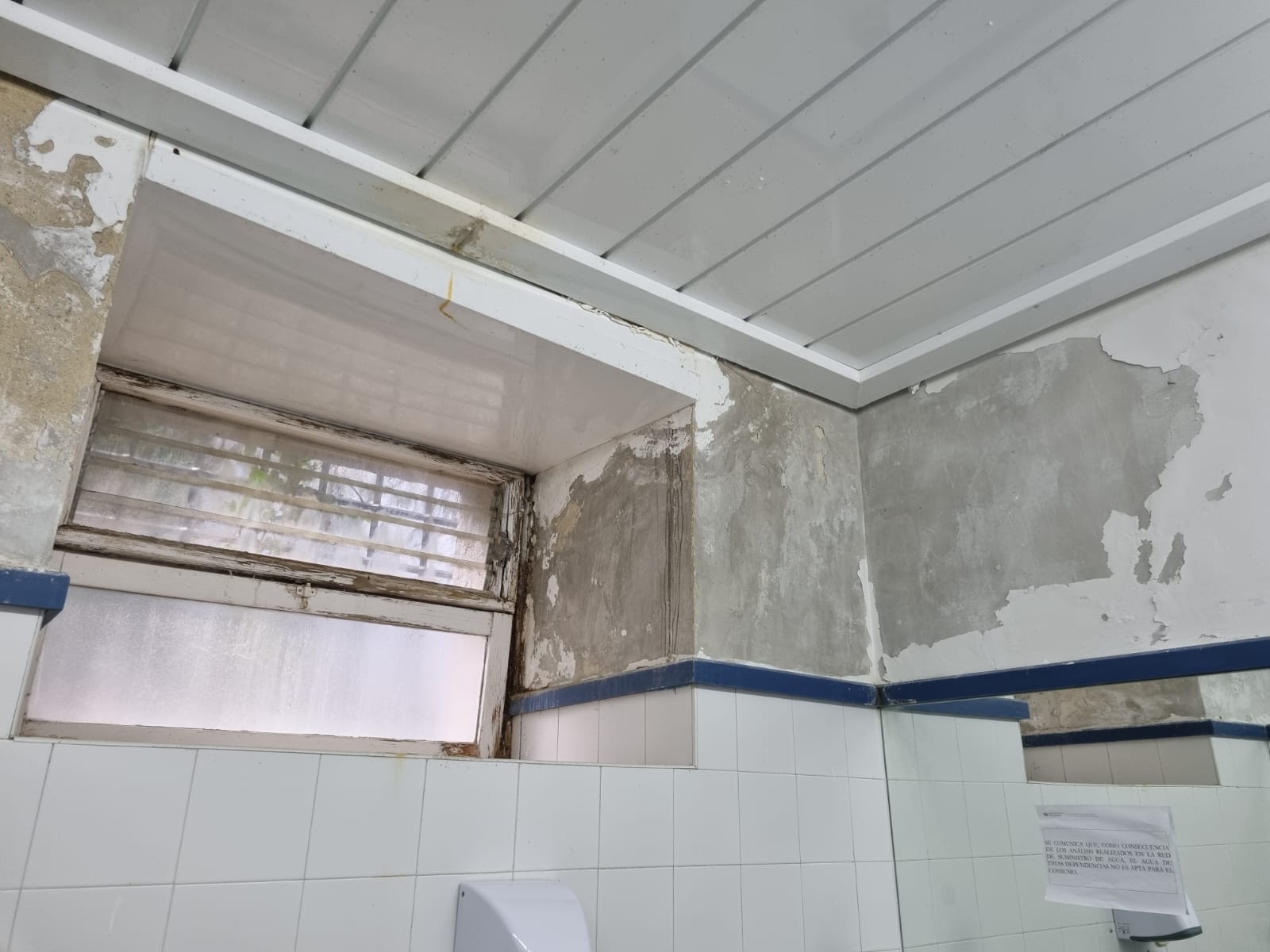 Las paredes desconchadas y la humedad son perfectamente visibles en la recepción de visitantes y en los aseos públicos, que es lo que aparece en la imagen.