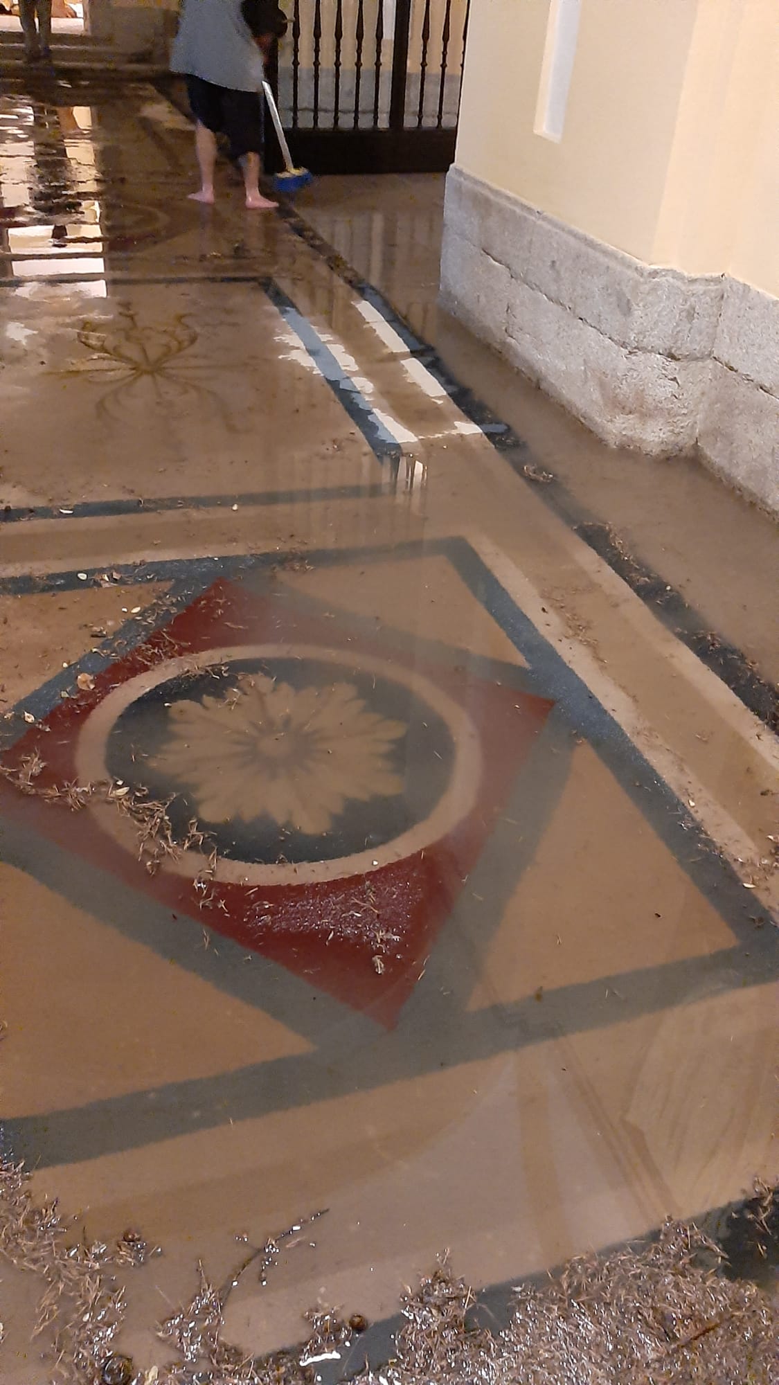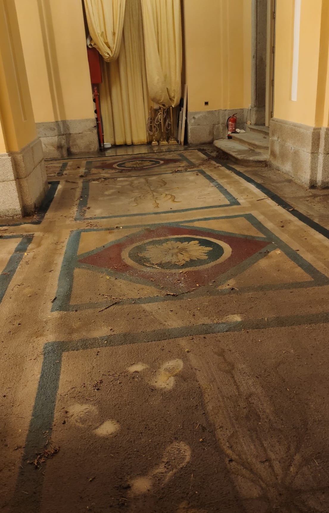 El pasado lunes, las lluvias provocaron la inundación del Palacio de El Pardo. Alfombras del siglo XVIII quedaron totalmente sumergidas en agua con el consecuente deterioro que eso ocasionará inevitablemente en las piezas.