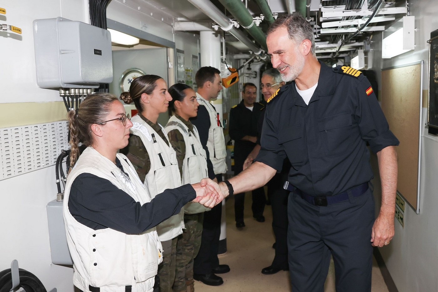 Felipe VI supervisó el ejercicio y saludó amablemente a todos los integrantes de la tripulación.