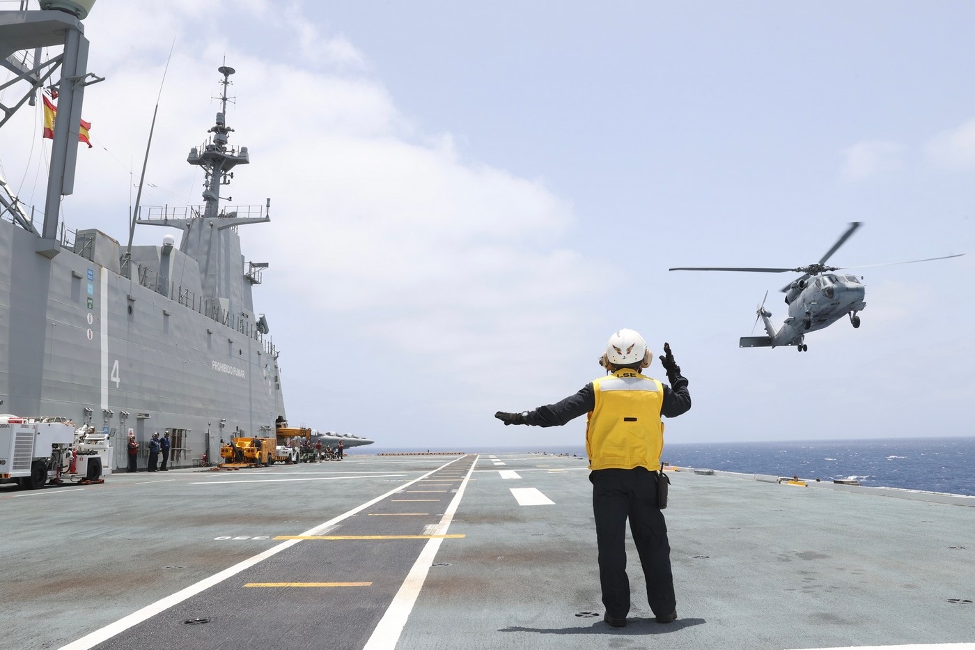 Junto a ellos, aviones Harrier de la 9ª Escuadrilla, helicópteros SH-60F de la 10ª Escuadrilla, un avión de media velocidad Cessna Citation de la cuarta escuadrilla y un avión de vigilancia marítima D4 del Ejército del Aire y del Espacio.