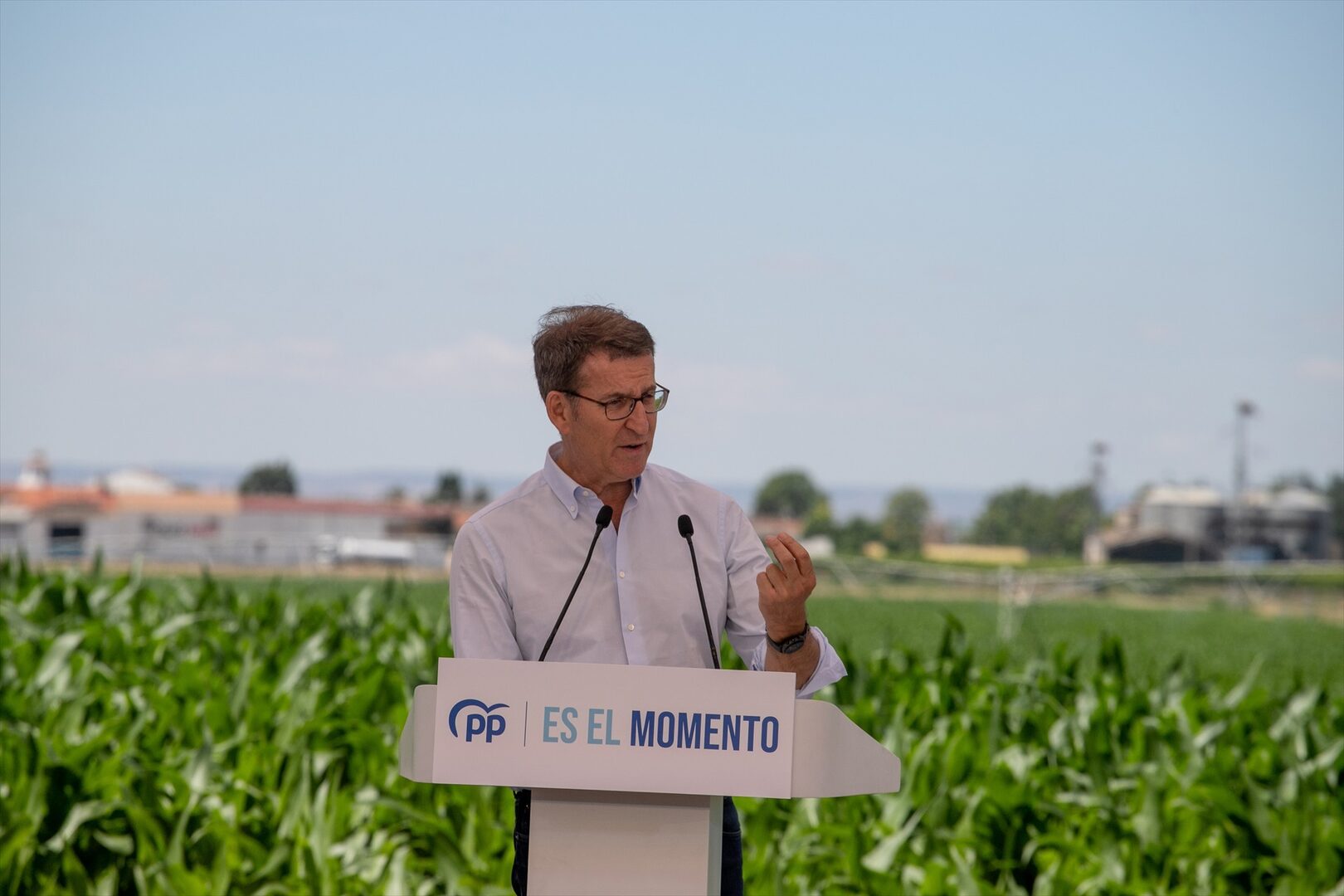 Feijóo ha prometido este sábado en Gimenells una ley de apoyo al sistema alimentario español e invertir en 6 años 40.000 millones de euros en infraestructuras hídricas en un acto sectorial sobre el sector agroalimentario y el mundo rural.