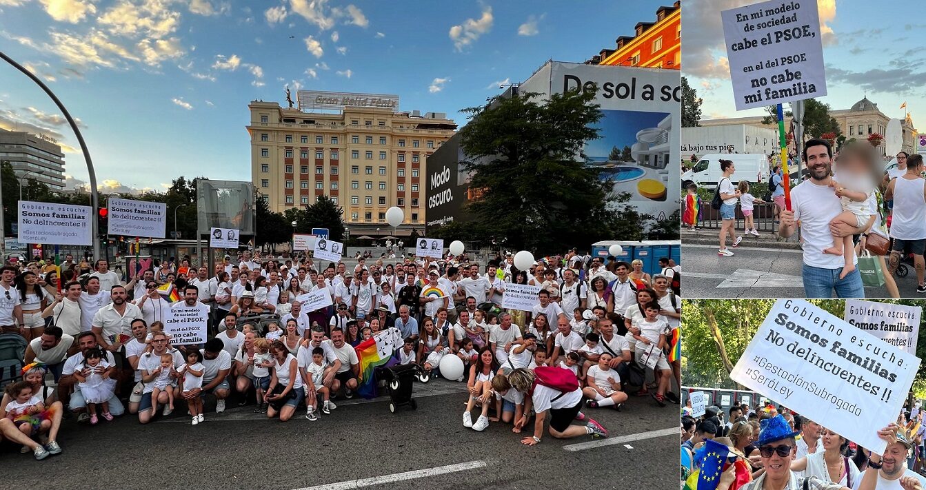 ‘Abrazando la diversidad familiar, iguales en derechos’, ese era el lema elegido para la marcha del Orgullo LGTBI 2023 (como comunicaron los propios organizadores). Pero la convocatoria de elecciones generales para el próximo 23 de julio, lo cambió todo. Se eliminó porque era "incómodo" para el PSOE con los comicios a la vuelta de la esquina. Intentaron "invisibilizar a las familias por gestación subrogada".