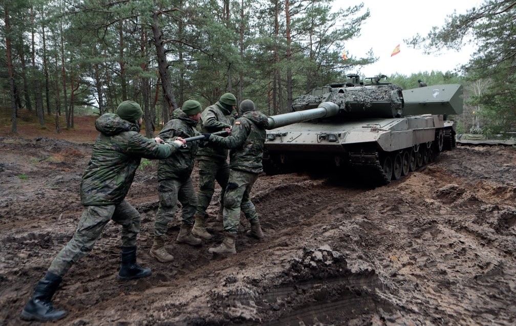 El despliegue fijo español en el muro anti-Rusia de la OTAN se completa con la participación en el grupo de combate multinacional de Letonia, donde España tiene desplegados unos 600 efectivos, que tienen entre su material asociado 6 carros de combate Leopardo 2E, 15 blindado de combate Pizarro, 15 vehículos oruga acorazados TOA, así como de otros vehículos de transporte. Además, llevan entre su armamento tanto morteros como misiles contra carro Spike.