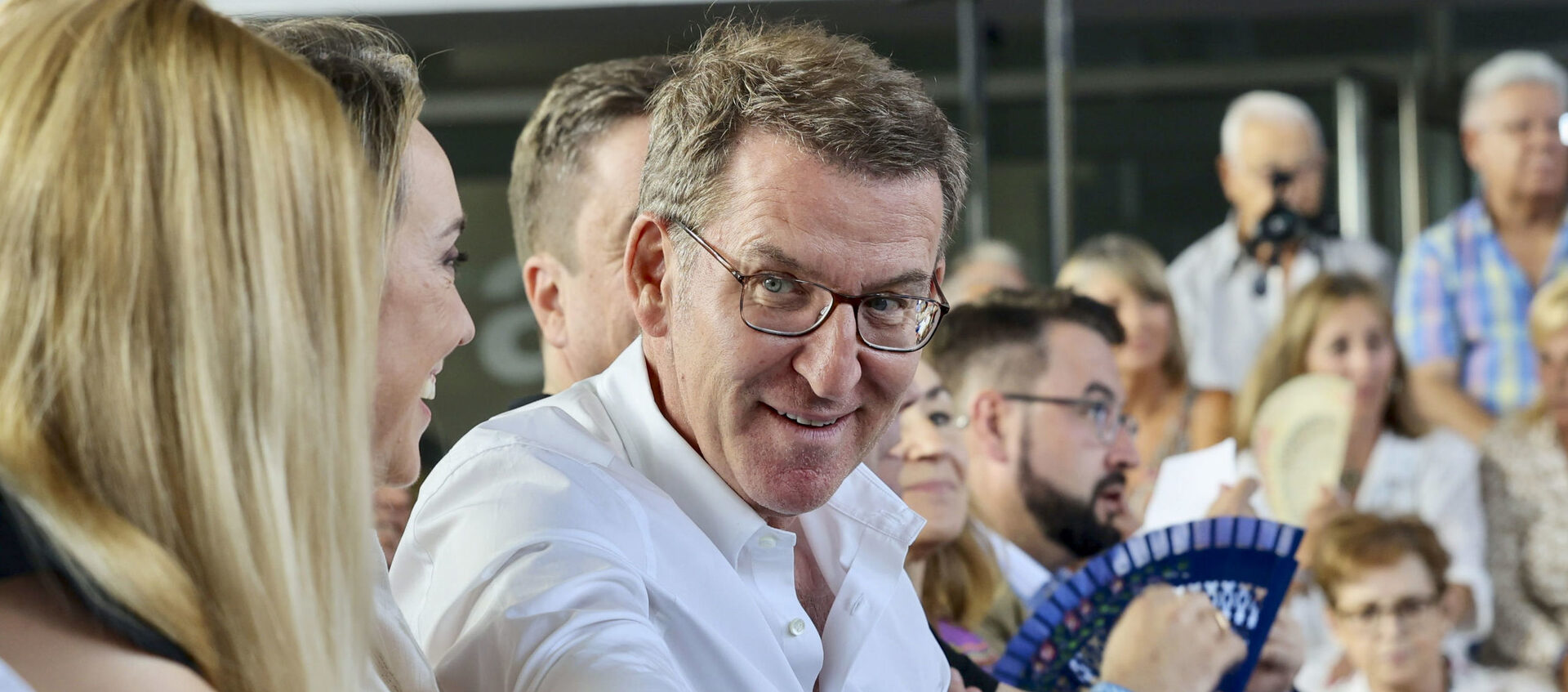 "Yo no pido ningún voto regalado. Yo no pido ningún cheque en blanco", ha proclamado Feijóo ante un millar de asistentes llamando a unir el voto en el Partido Popular para poder echar a Sánchez del Palacio de la Moncloa.