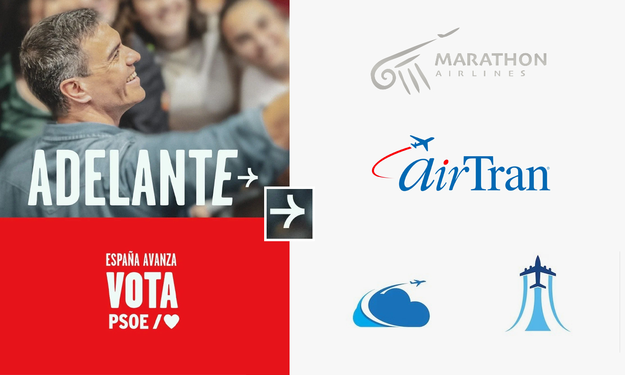 Pues bien, recientemente en las redes sociales también se han hecho eco de un curioso detalle: la propaganda electoral del PSOE podría estar repleta del famoso avión del presidente. Y es que los publicistas encargados de la imagen electoral del PSOE han empleado en sus recursos gráficos una suerte de flecha que bien recuerda a las de las líneas aéreas.