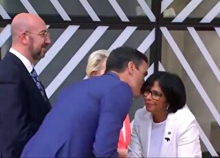 "Libertad Digital (una de esas cosas que yo me leo para ahorrarles a ustedes el susto) tituló: "Bochorno por el cariñoso saludo de Pedro Sánchez a Delcy Rodríguez". En The Objective fue: "Sánchez da dos besos a Delcy Rodríguez en su visita durante la cumbre UE-Celac". En El Debate: "Sánchez recibe con dos besos a la vicepresidenta de la dictadura de Maduro". Y en Okdiario: "Sánchez recibe con besos a la vicedictadora venezolana". Pero no fueron sólo los digitales de la fachosfera. El Mundo consideró que la foto del beso era de las grandes noticias del día, hasta convertirla en la principal imagen de su portada. En La Razón dijeron que Sánchez había sido "efusivo" y había tenido un "cariñoso gesto". Besos, cariños. ¡Qué desfachatez! ¡Qué diplomacia ni protocolo! Le tenía que haber tirado dos mocos". Idafe, eres una impresentable y tu medio una basura sanchista que está para mentir, desinformar, engañar a sus lectores y lamerle las botas a Sánchez.