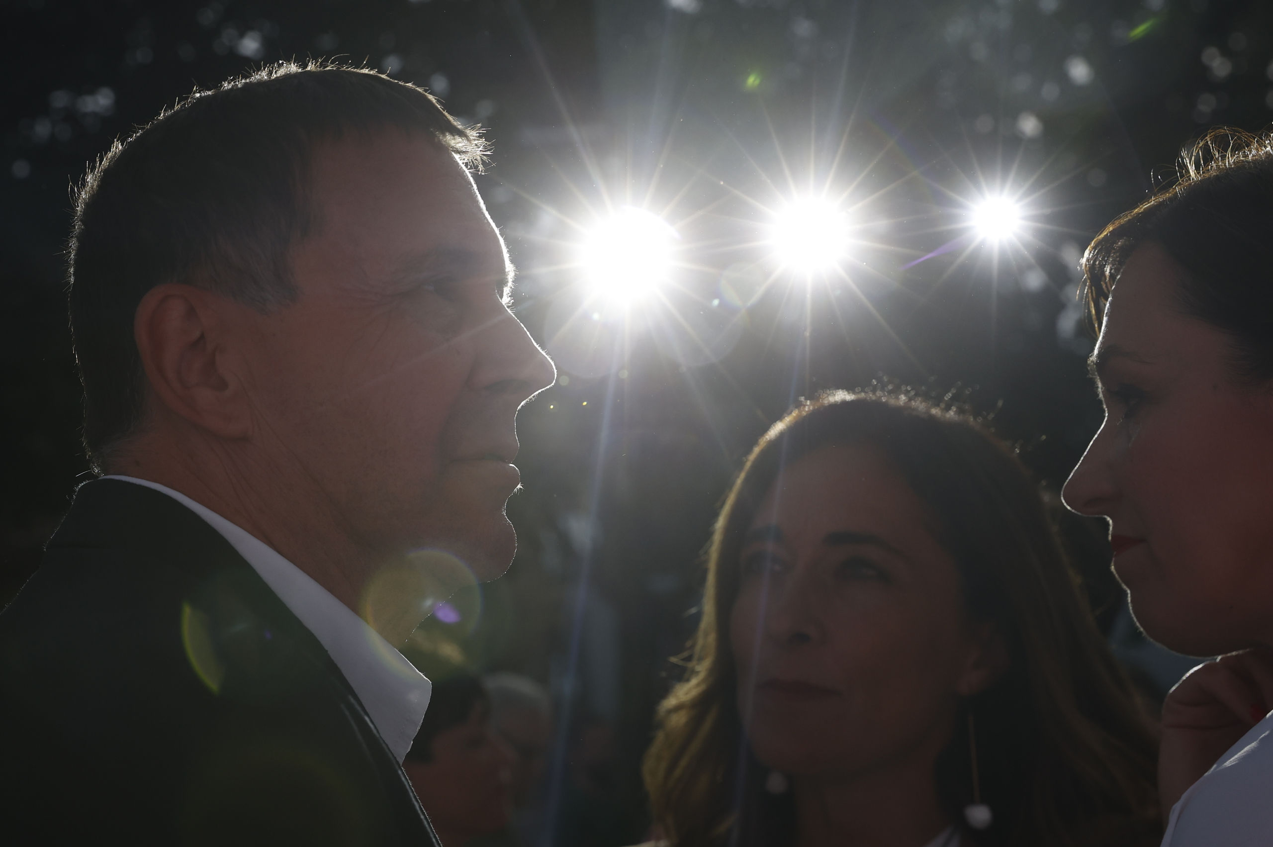 El candidato del PP a las elecciones generales, Alberto Núñez Feijóo (i), saluda a su mujer, a su madre y a su hermana durante el acto de cierre de campaña celebrado este viernes en La Coruña.