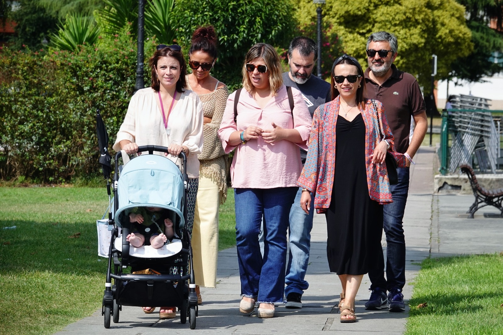 Adriana Lastra pasea por Oviedo junto a su hijo y amigos