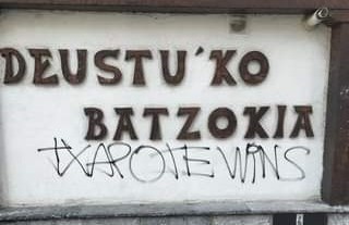 En este caso, en la fachada del ‘batzoki’ -local frecuentado por militantes y simpatizantes del PNV- de Deusto se puede leer en una pintada en negro "Txapote wins" (Txapote gana). El PNV de Bilbao ha denunciado estos hechos y ha asegurado que "no hay razón y no hay excusa" para este tipo de acciones. "Basta ya", ha reclamado.
