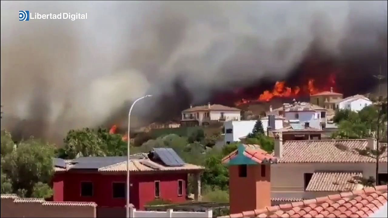 El incendio se declaraba pasado el mediodía en el paraje de Santa Margarita, en La Línea de la Concepción. El fuego se acercaba peligrosamente a las viviendas de la urbanización Venta Melchor y los vecinos grababan la cercanía de las llamas y refrescaban sus casas.