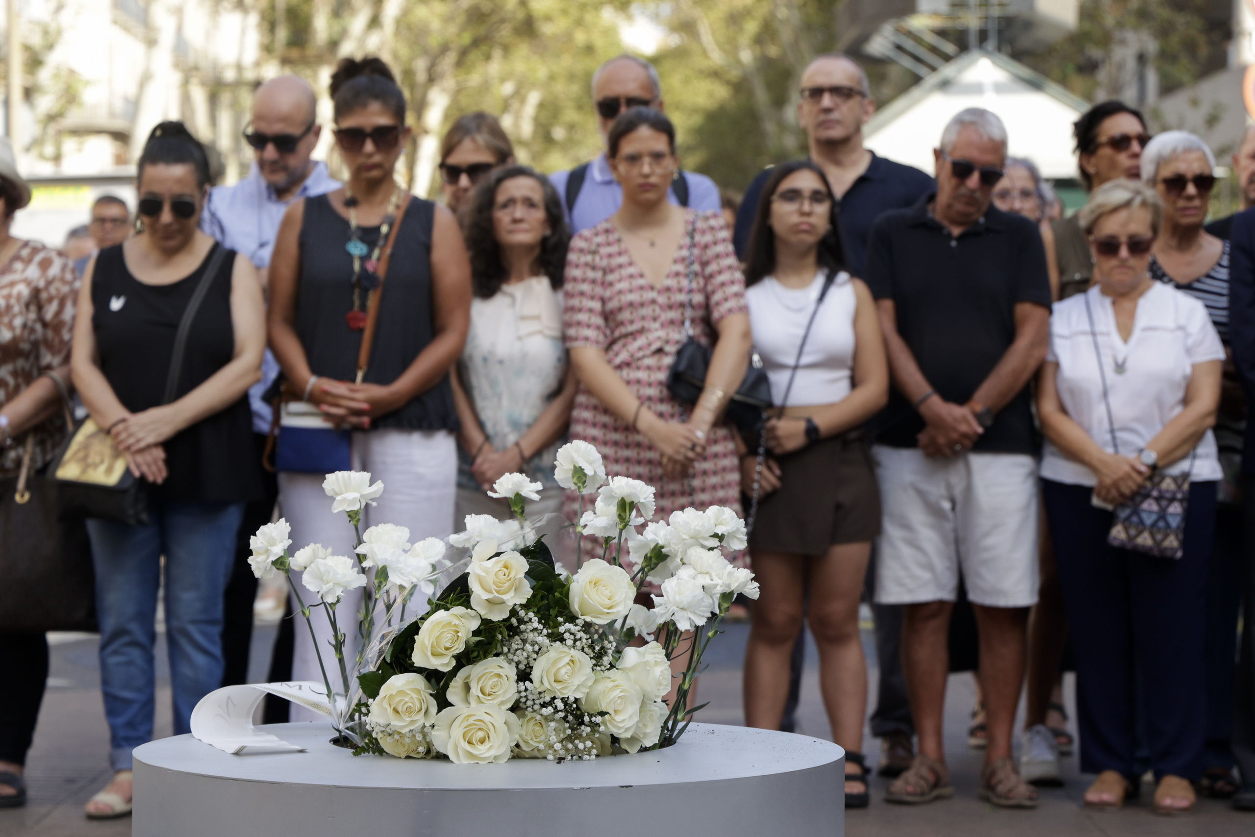El presidente de la Generalidad, Pere Aragonès, el alcalde de Barcelona, Jaume Collboni, la presidenta del Parlamento catalán, Anna Erra (de Junts) y el delegado del Gobierno, Carlos Pietro, han depositado unos ramos de flores en el lugar donde se detuvo la furgoneta que conducía Younes Abouyaaqoub, quien dejó un reguero de 16 cadáveres y cientos de heridos en las Ramblas. Antes de la ofrenda floral, a las diez de la mañana, se ha leído un breve texto de condena y un violonchelista ha interpretado "El cant dels ocells", de Pau Casals.