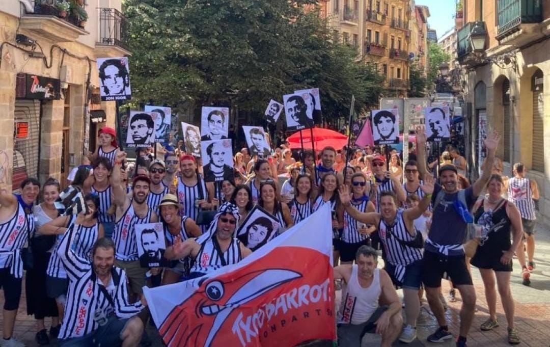 Según ha explicado, se trata de la comparsa Txoribarrote, en cuyo logo aparece el icono de la amnistía de los presos de ETA. "Los etarras en cuestión son Jon Igor Solana, Harriet Iragi, Jon Mirena San Pedro, Beatriz Echevarría, Ibai Beobide, Íñigo Zapirain, Óscar Barreras, Fernando García Jodra, Iker Olabarrieta, Ángel Telleria y Javier Abaunza, entre otros. También el etarra fallecido Pedro del Hoyo", resume.
