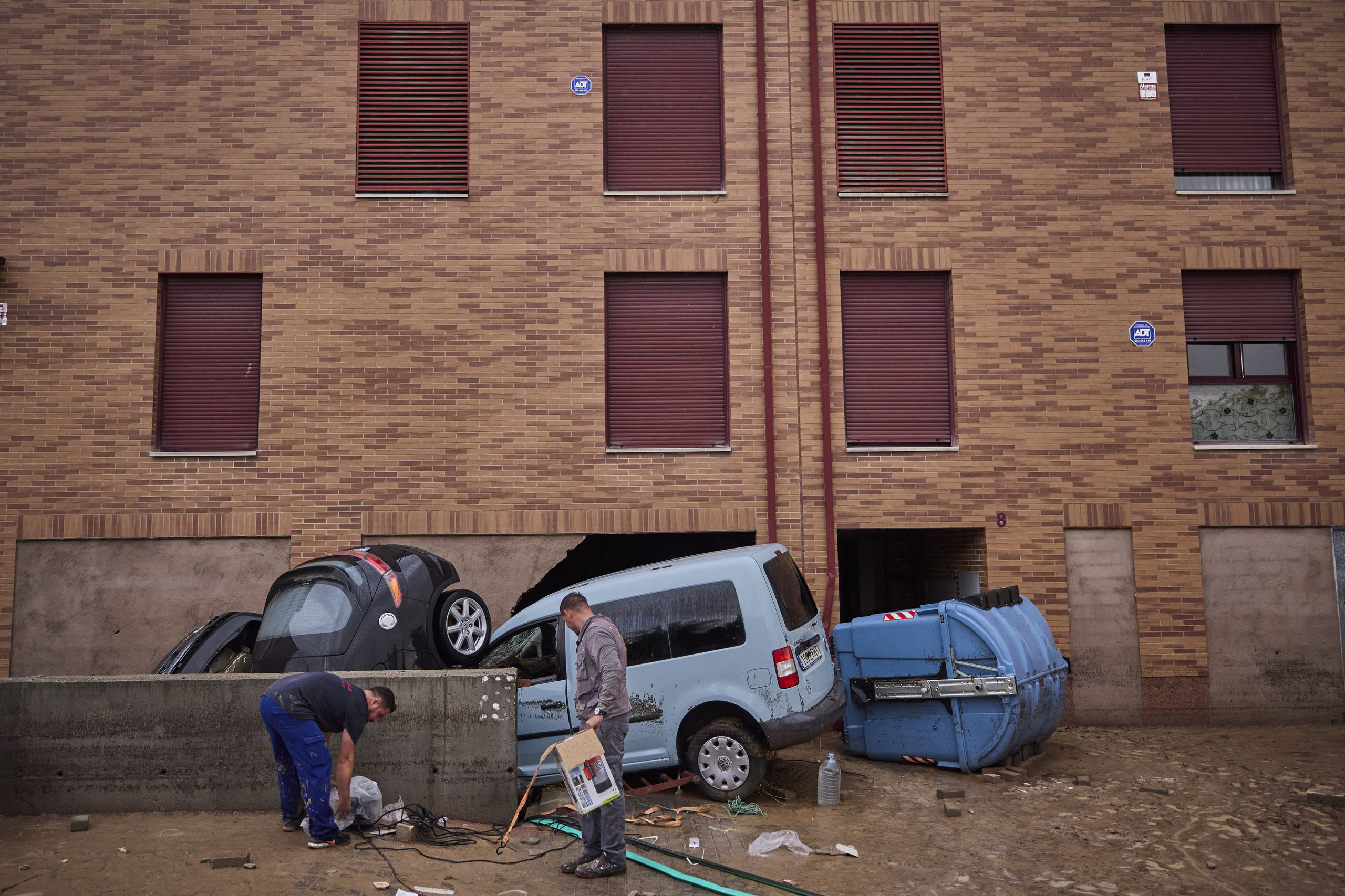 La imagen de dos coches cubiertos de barro por las fuertes lluvias torrenciales que se han producido en Madrid causadas por la DANA.