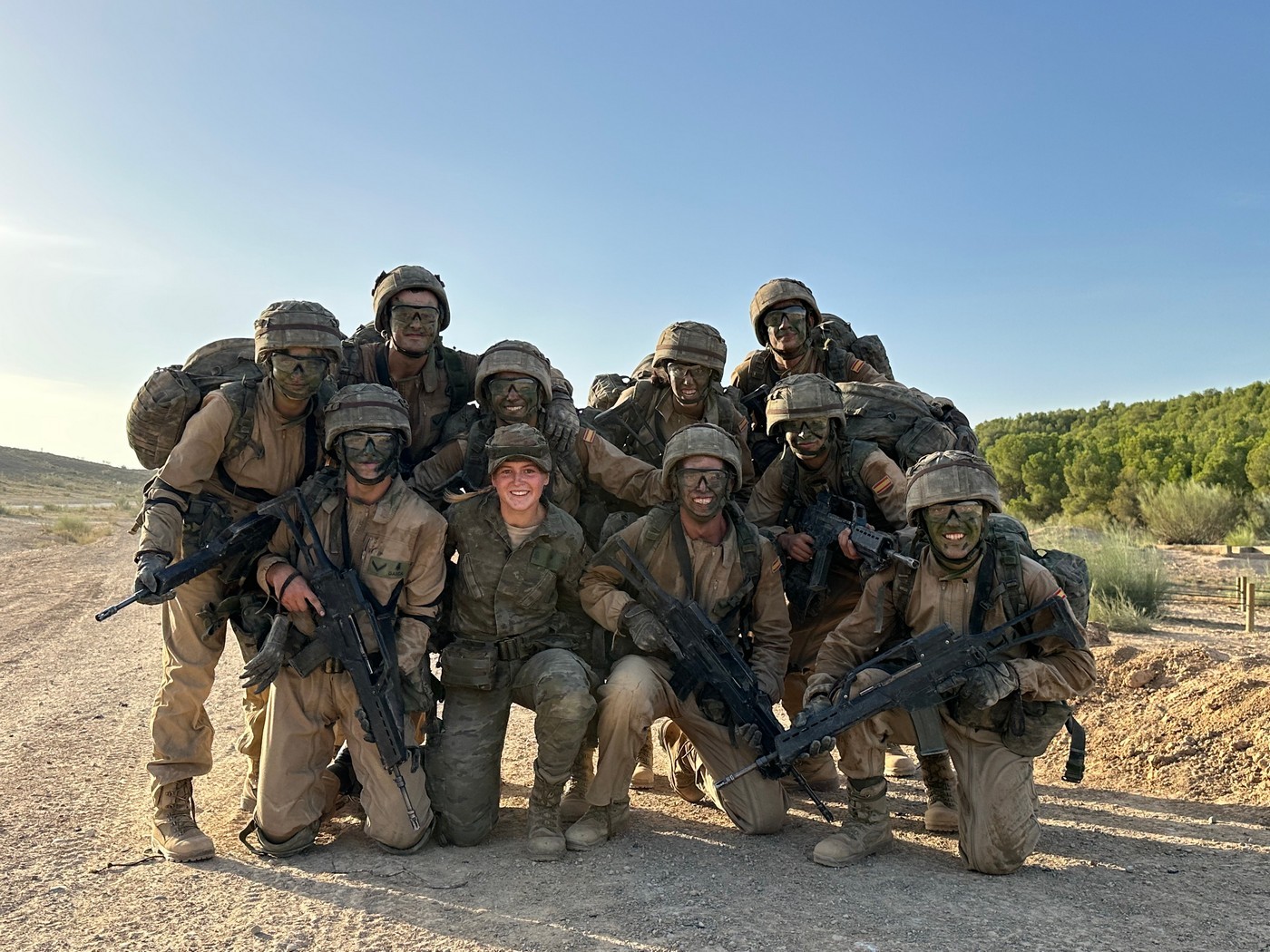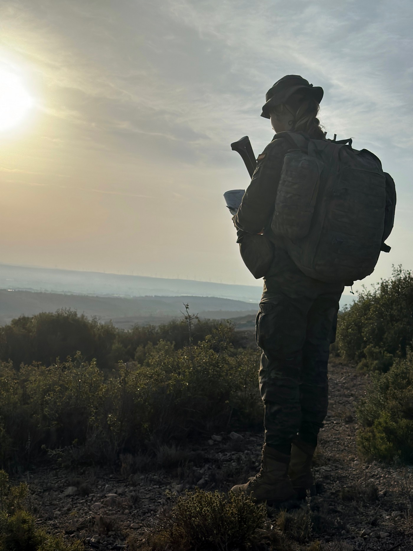 La Princesa de Asturias, Leonor de Borbón, con todo su equipo, durante el ocaso en el campo de maniobras de San Gregorio.