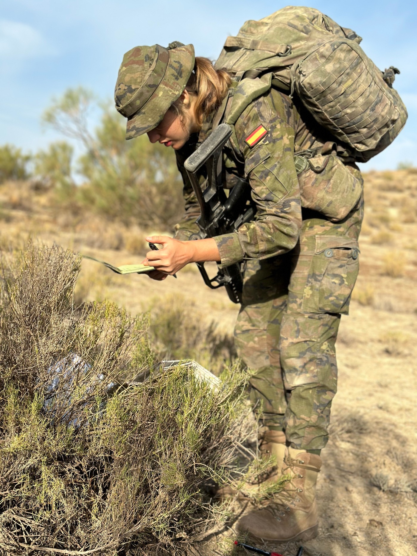 Leonor de Borbón, pie a tierra en el campo de San Gregorio, realiza uno de los recorridos topográficos incluidos en el primer ciclo de Instrucción y Adiestramiento.