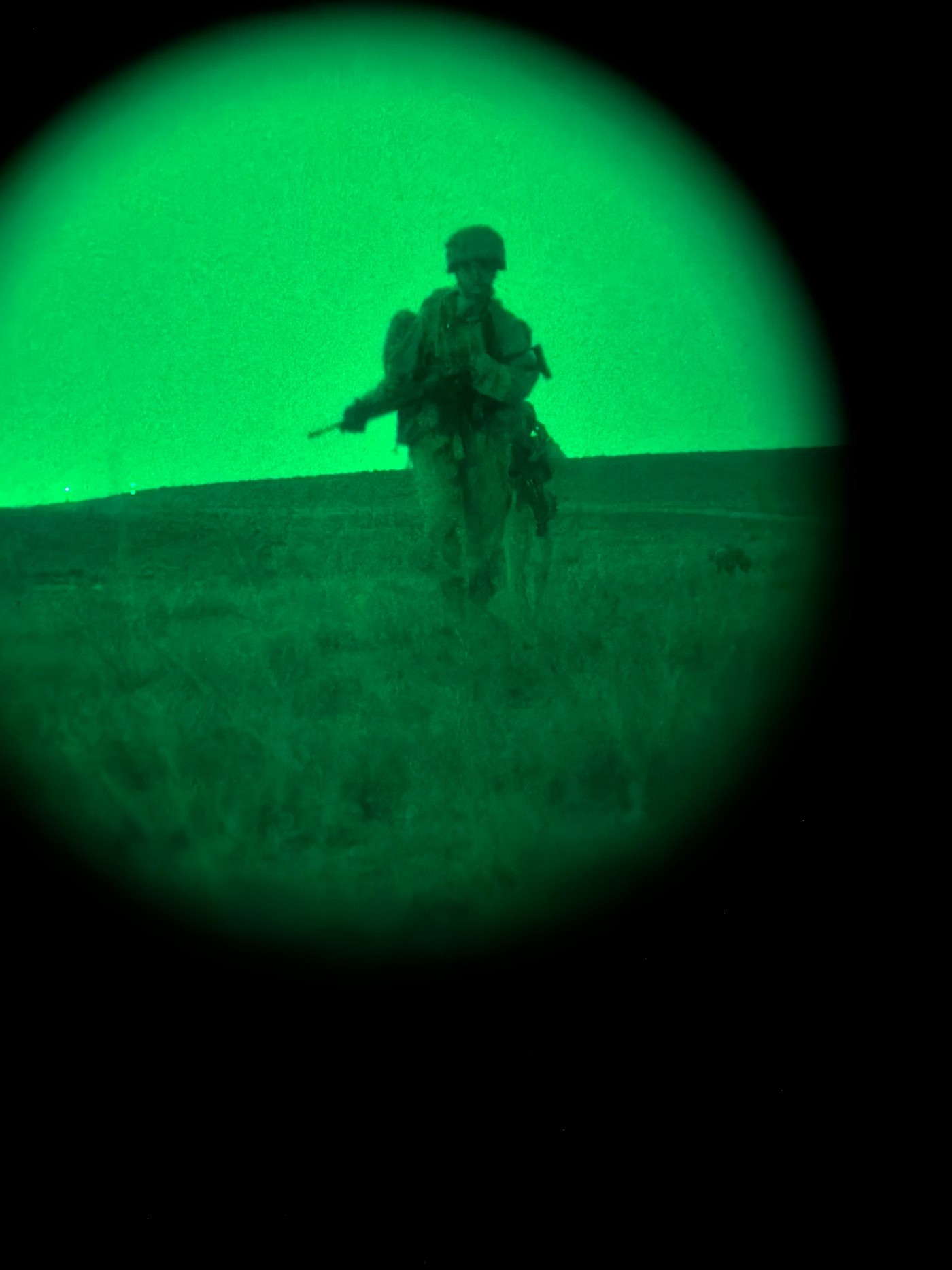 El adiestramiento se realiza en ambiente tanto diurno como nocturno, y con las condiciones climatológicas que haya en ese momento. En la imagen, doña Leonor visto con visores de visión nocturna.