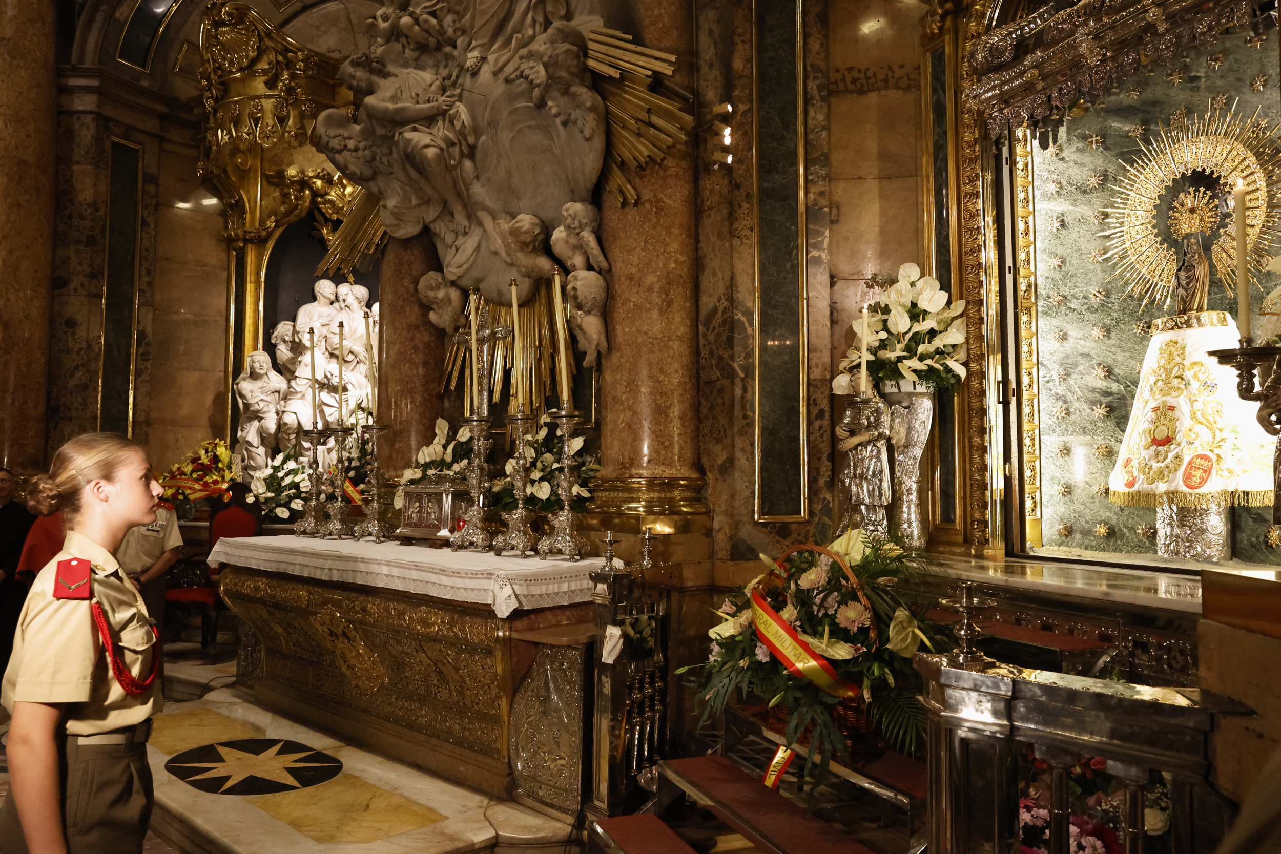 La Princesa Leonor rinde honores a la Virgen del Pilar antes de su jura de bandera