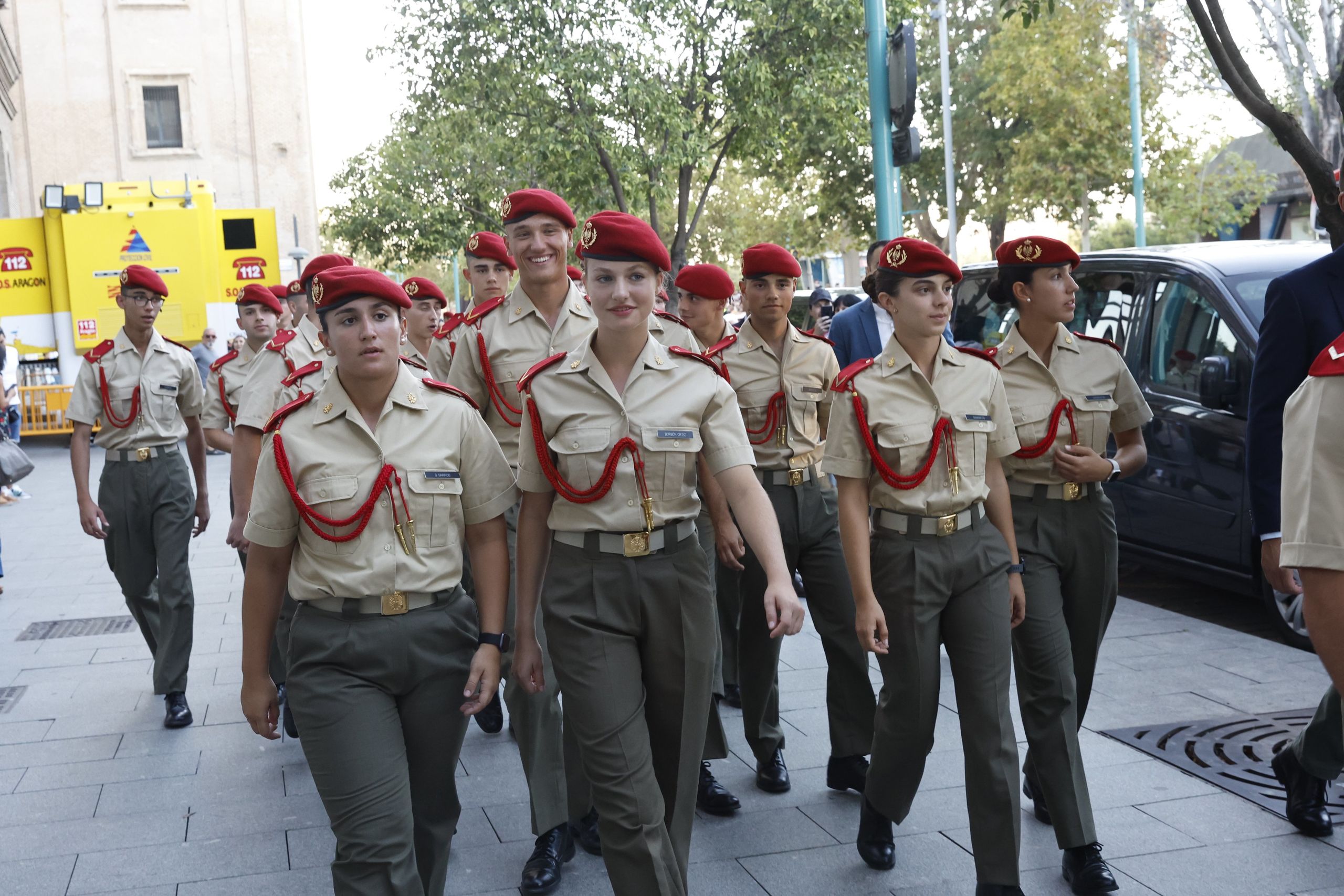 La heredera de la Corona ha participado, junto al resto de cadetes de primer año de la Academia General Militar, en la ofrenda floral a la Virgen del Pilar previa a su jura de bandera.