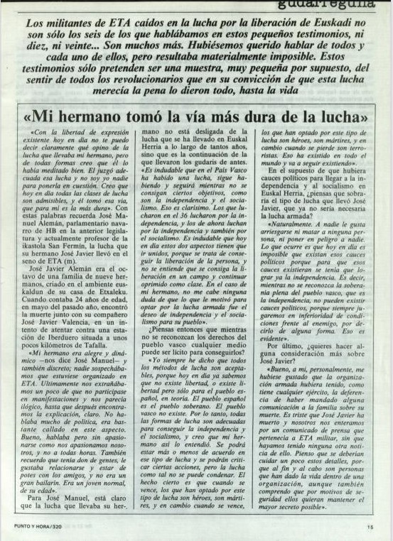 La sentencia considera que el párrafo del encabezamiento de la entrevista "con sus expresiones y contexto, constituye, a la par que una justificación a diversos militantes de ETA, anteriormente fallecidos, una proclama revolucionaria en defensa de la lucha de tal organización armada, y un homenaje a sus militantes desaparecidos, lo que integra, a juicio del Tribunal, una clara defensa y alabanza de la organización terrorista, de sus integrantes, y de su violenta actividad".