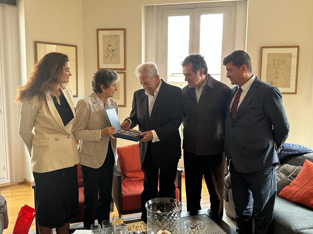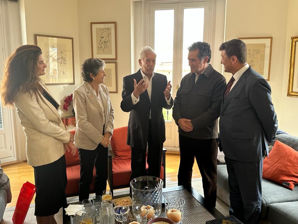 Una delegación de SCC encabezada por Mata y con el vicepresidente de la entidad, Alex Ramos, el secretario, Eloy Moreno, y la tesorera, Maraya Perinat, fue la encargada de notificar a Vargas Llosa la concesión del galardón.