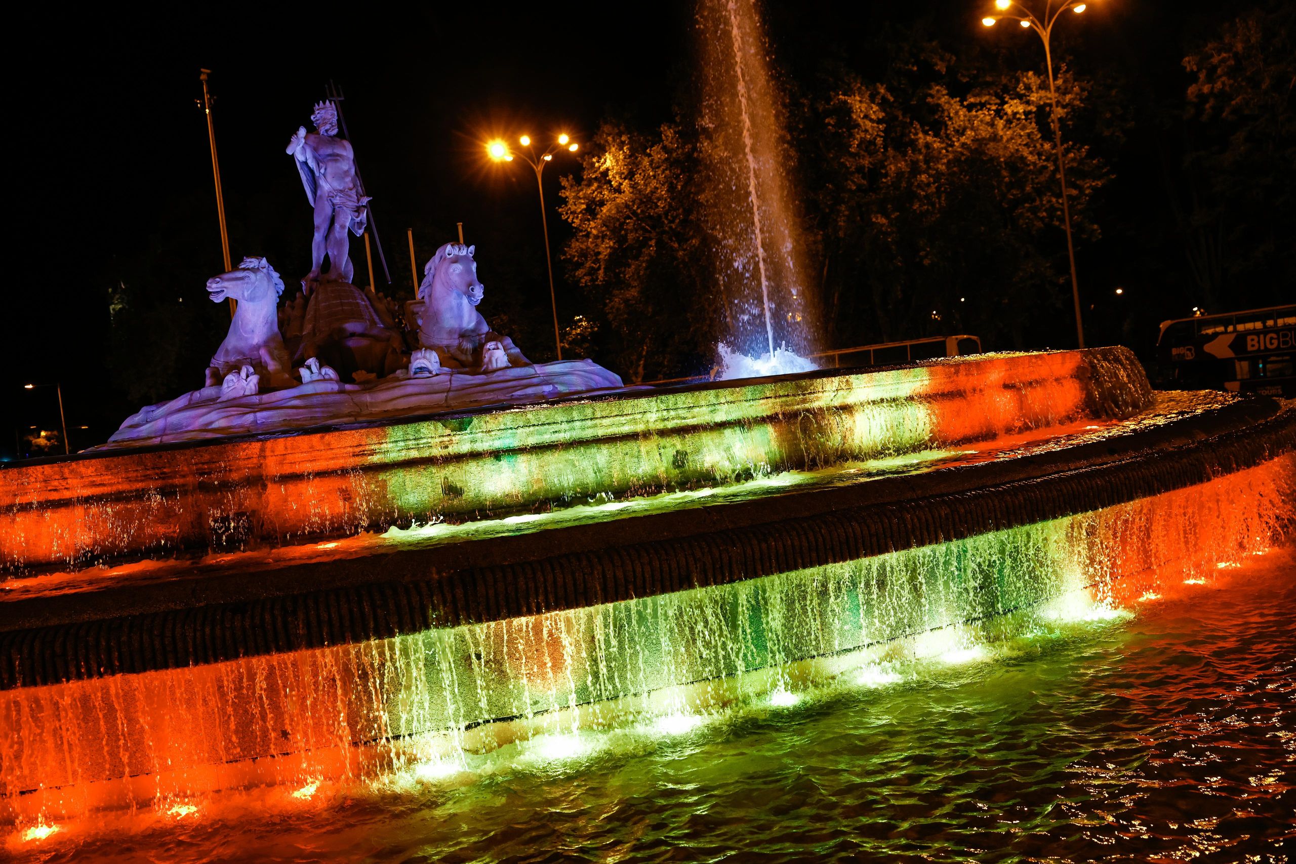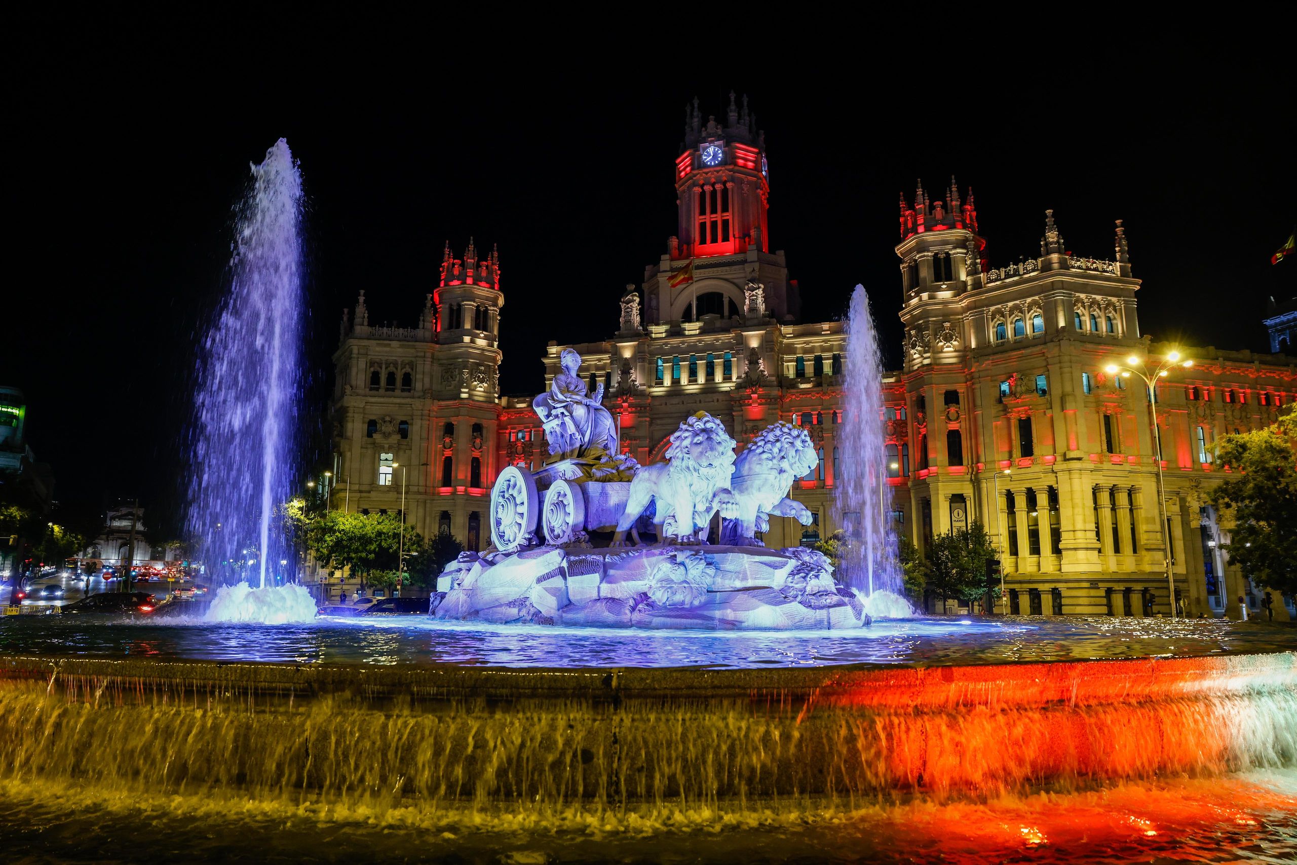 La Cibeles y el Ayuntamiento, iluminados por la jura de la Constitución de la princesa de Asturias.