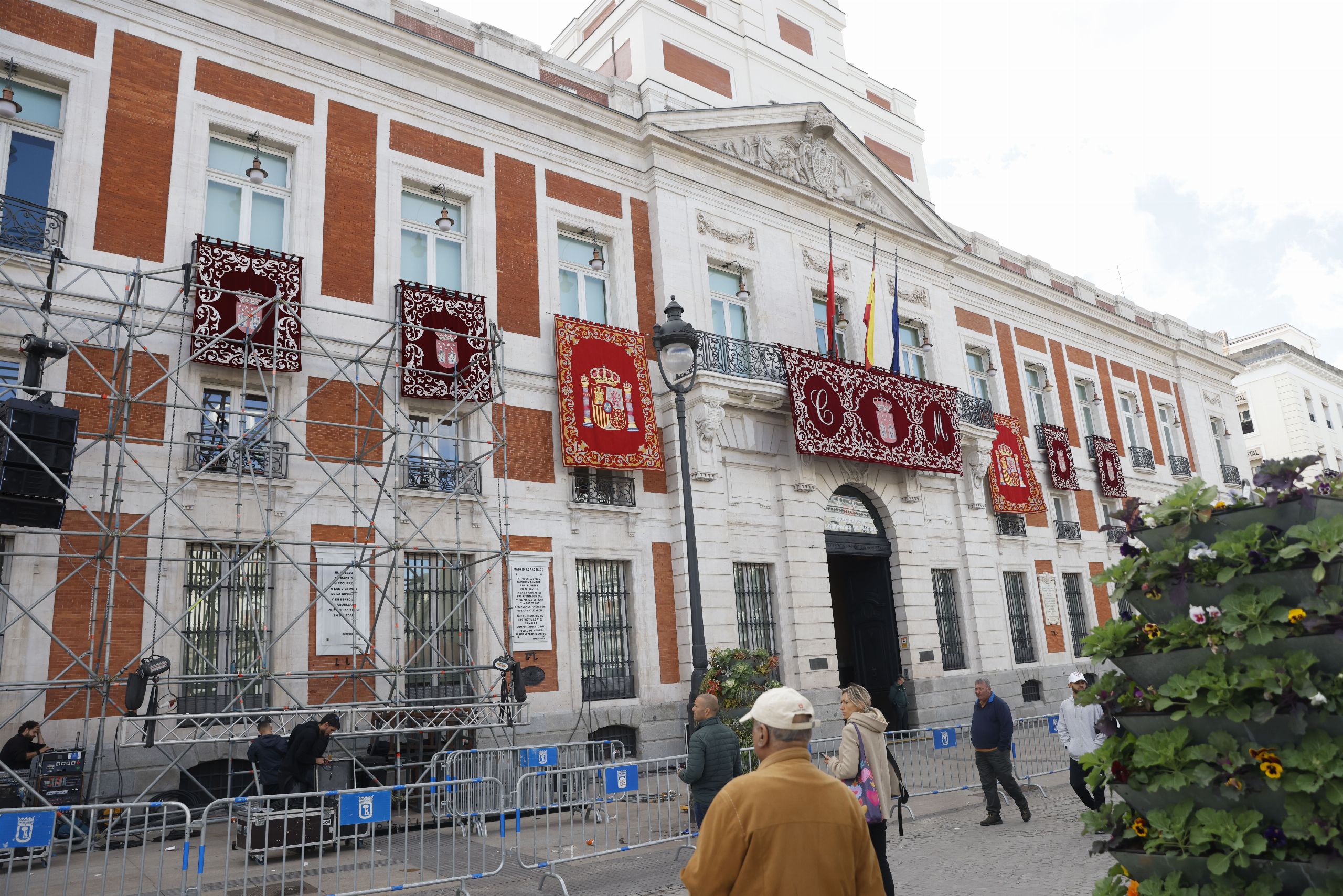 La Real Casa de Correos, sede del Gobierno de la Comunidad de Madrid, engalana su fachada con motivo de la jura de la Constitución por la mayoría de edad de la princesa Leonor.