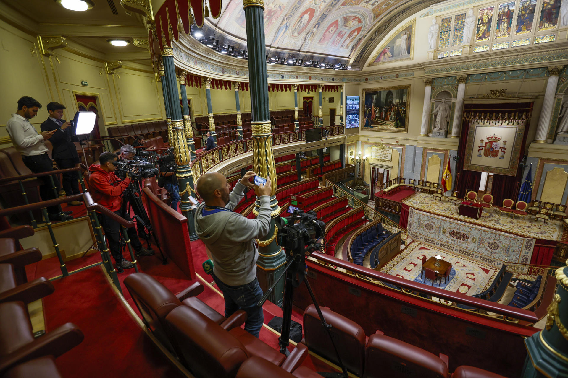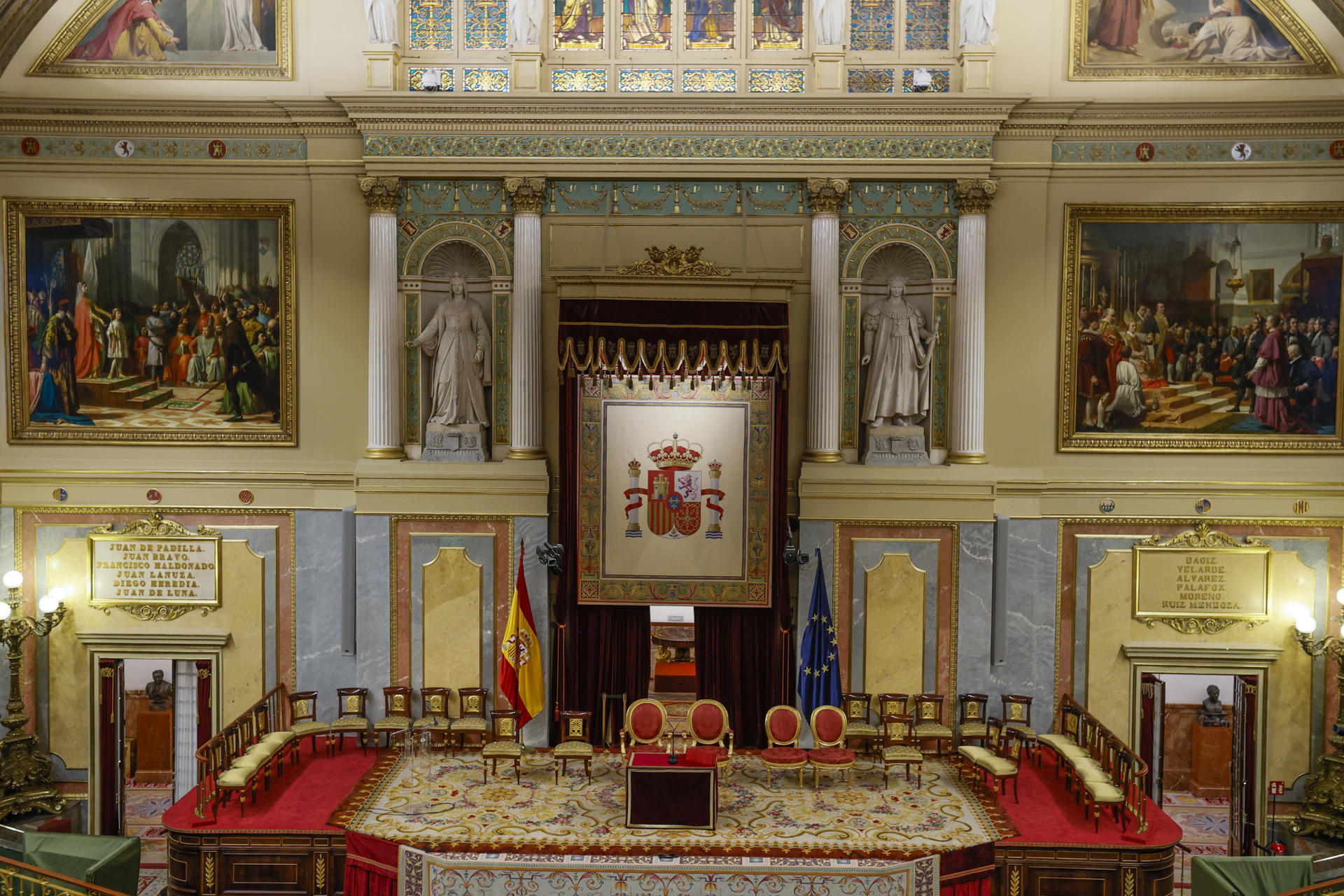 Vista del hemiciclo del Congreso de los Diputados en Madrid, preparado para la jura de la Constitución de la princesa de Asturias.