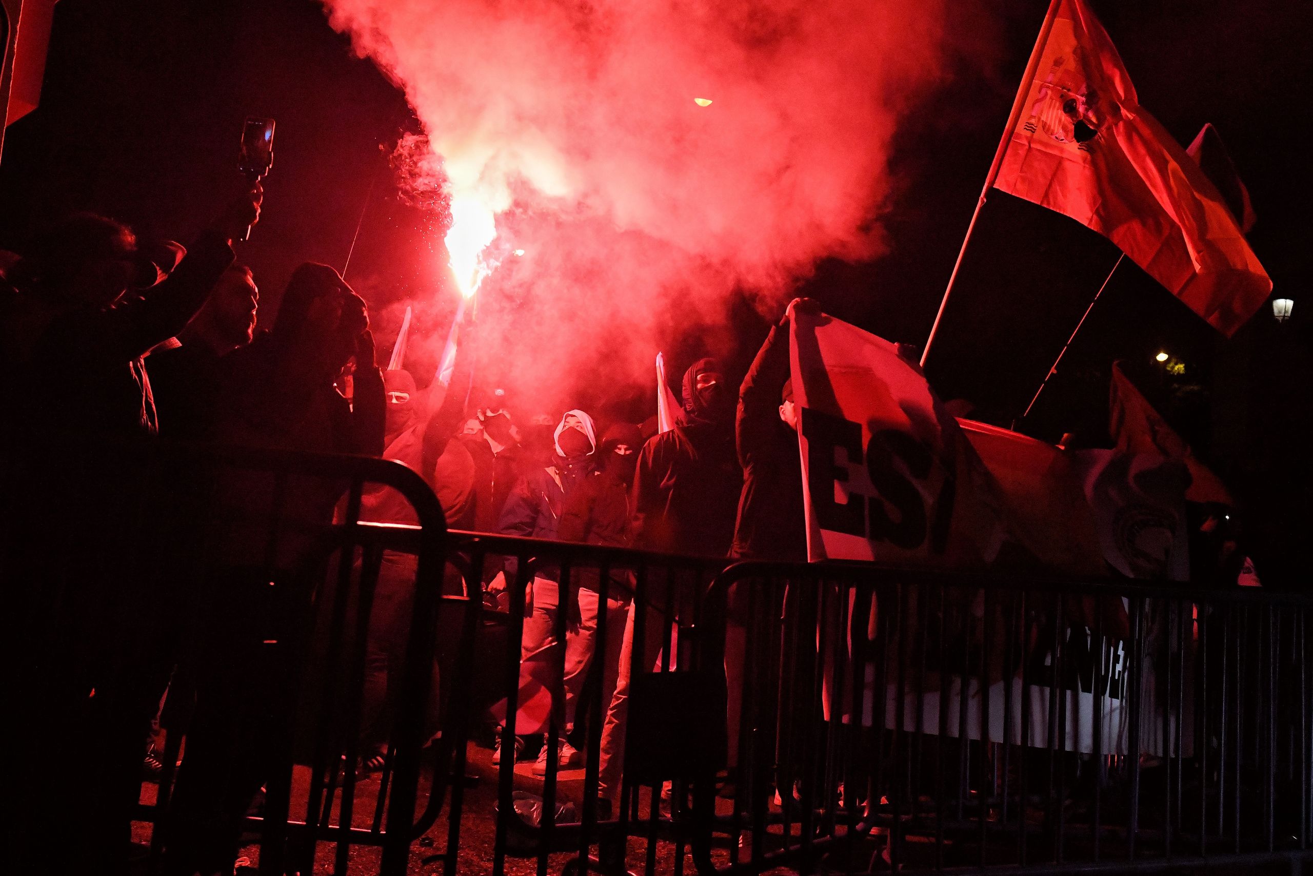Algunos manifestantes portan bengalas en las protestas contra la amnistía de Sánchez.