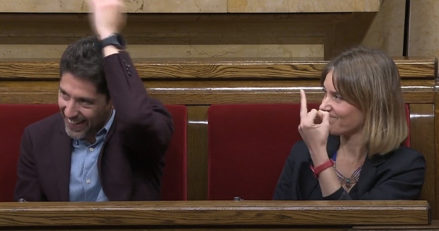La reacción de la presidenta del grupo aludido, Jéssica Albiach ha sido la de hacer el gesto de la peineta a Garriga a modo de respuesta a sus palabras. El portavoz de los comunes, David Cid, también ha gesticulado ante el discurso de Garriga, pero sin gestos obscenos.