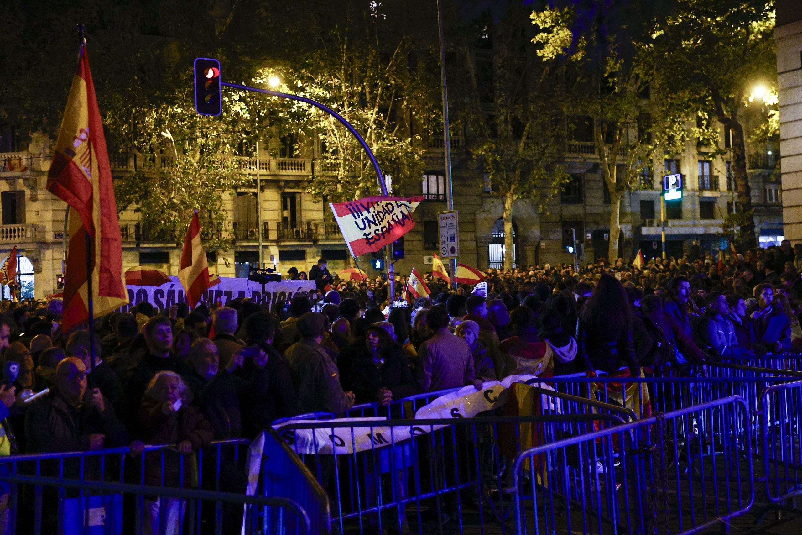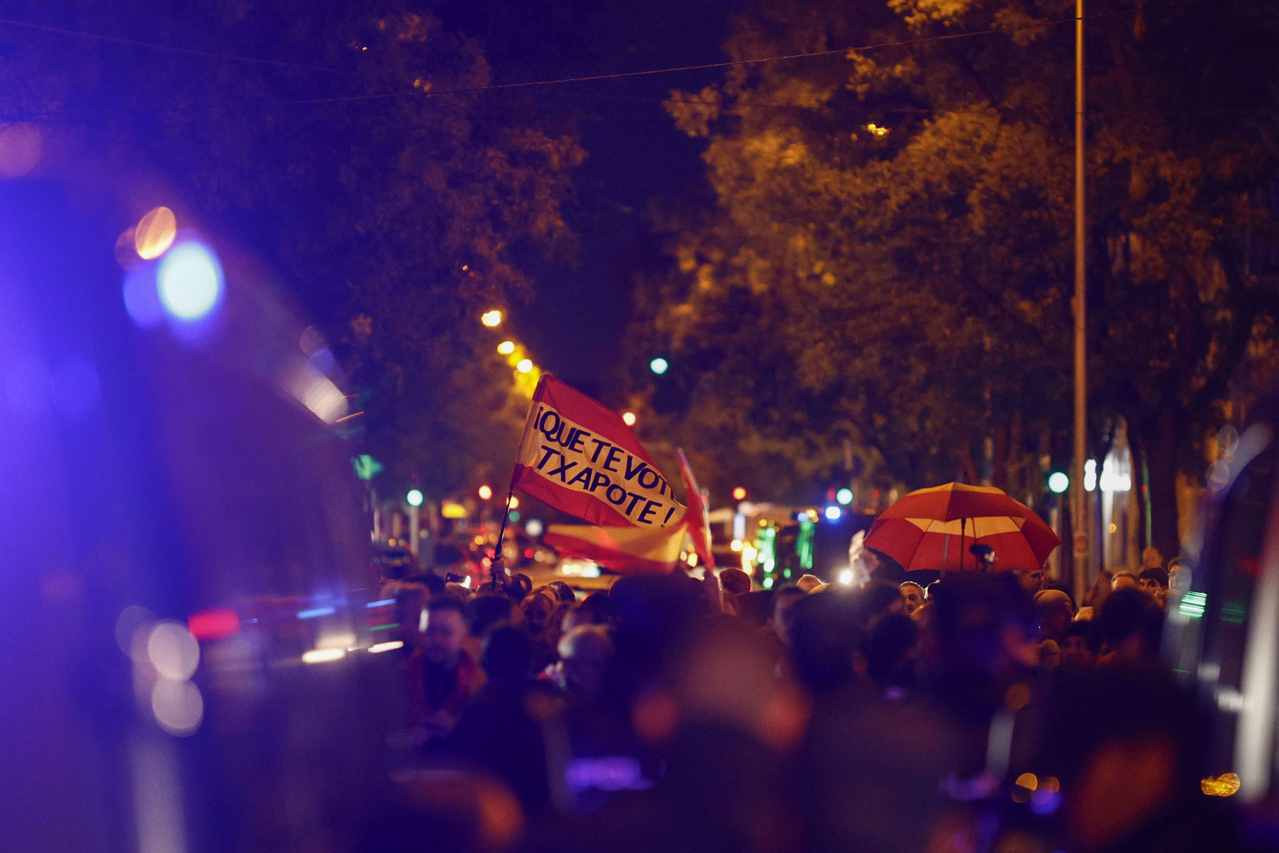 La concentración contra la amnistía de Sánchez frente a la sede de Ferraz se está desarrollando de forma pacífica.