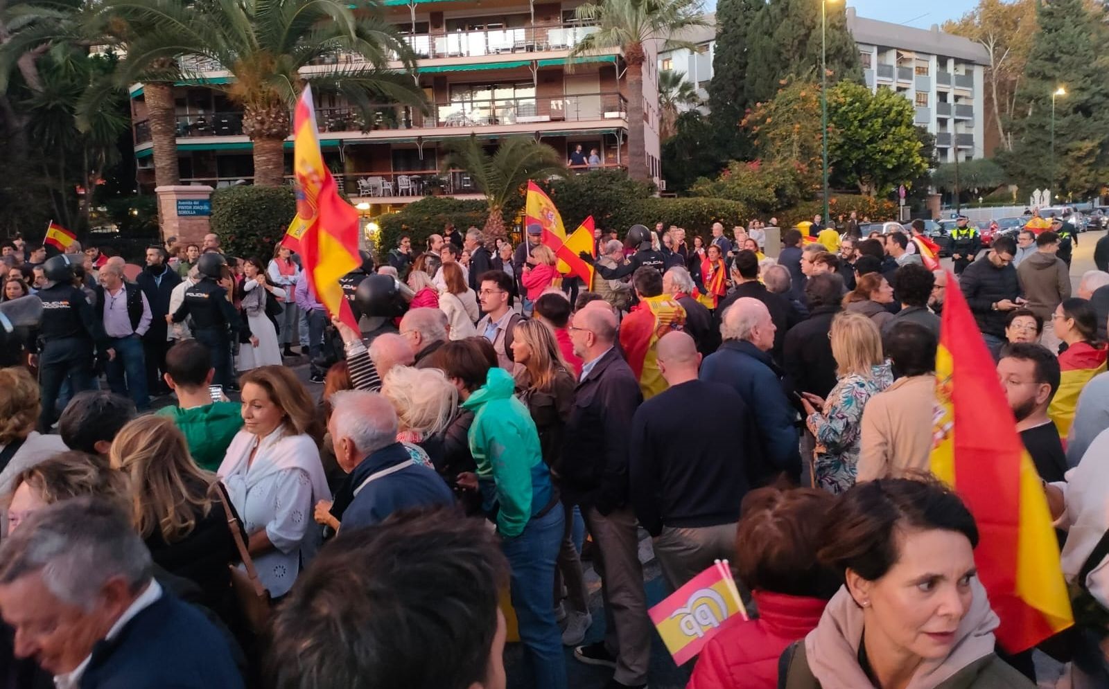 Entre los gritos se escuchaban los habituales dirigidos contra el presidente del Gobierno 'Pedro Sánchez, España no te quiere', también algún que otro insulto contra el jefe del Ejecutivo como 'Pedro Sánchez, hijo de puta'.