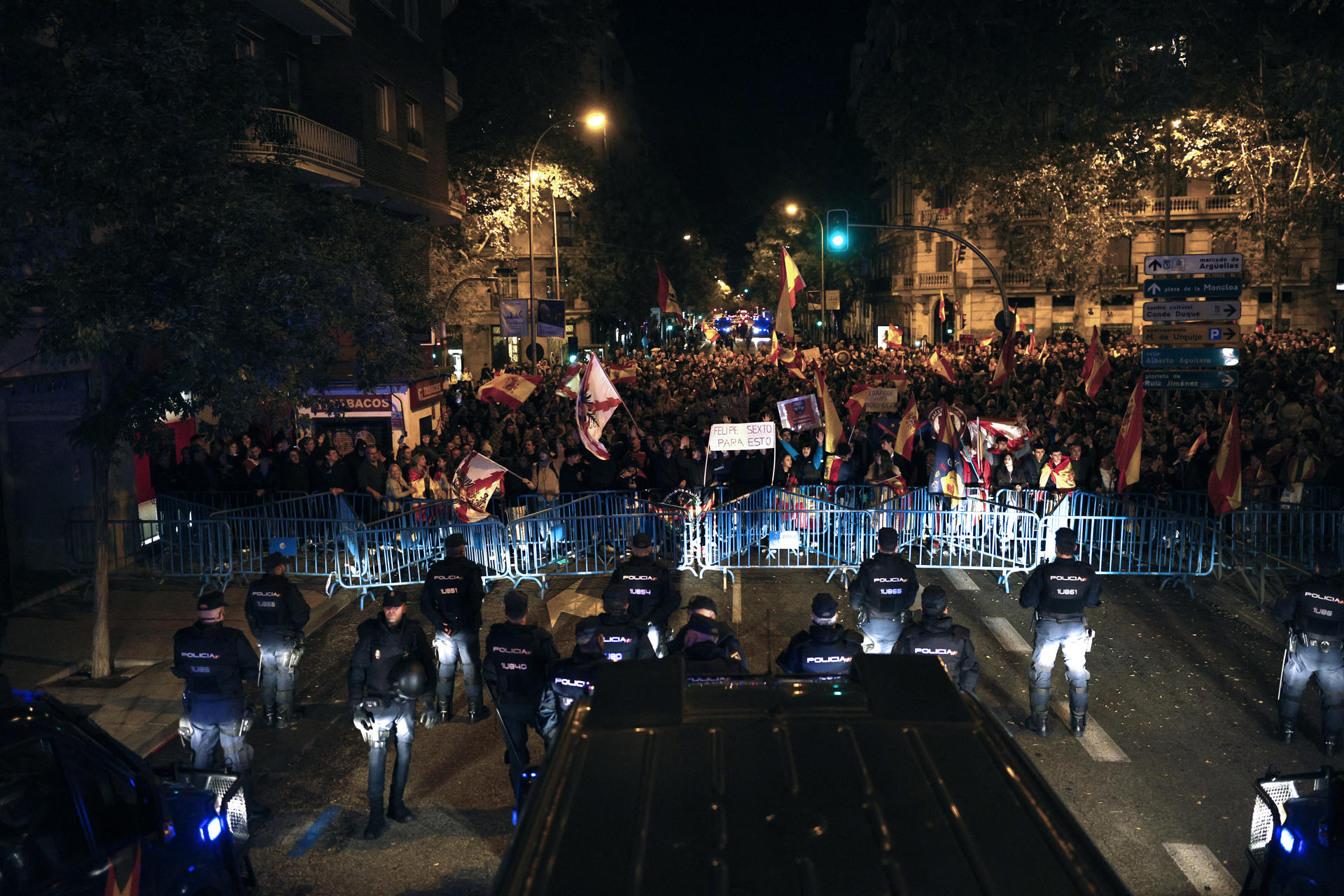Protestas en Ferraz contra la amnistía concedida por Sánchez a los golpistas catalanes