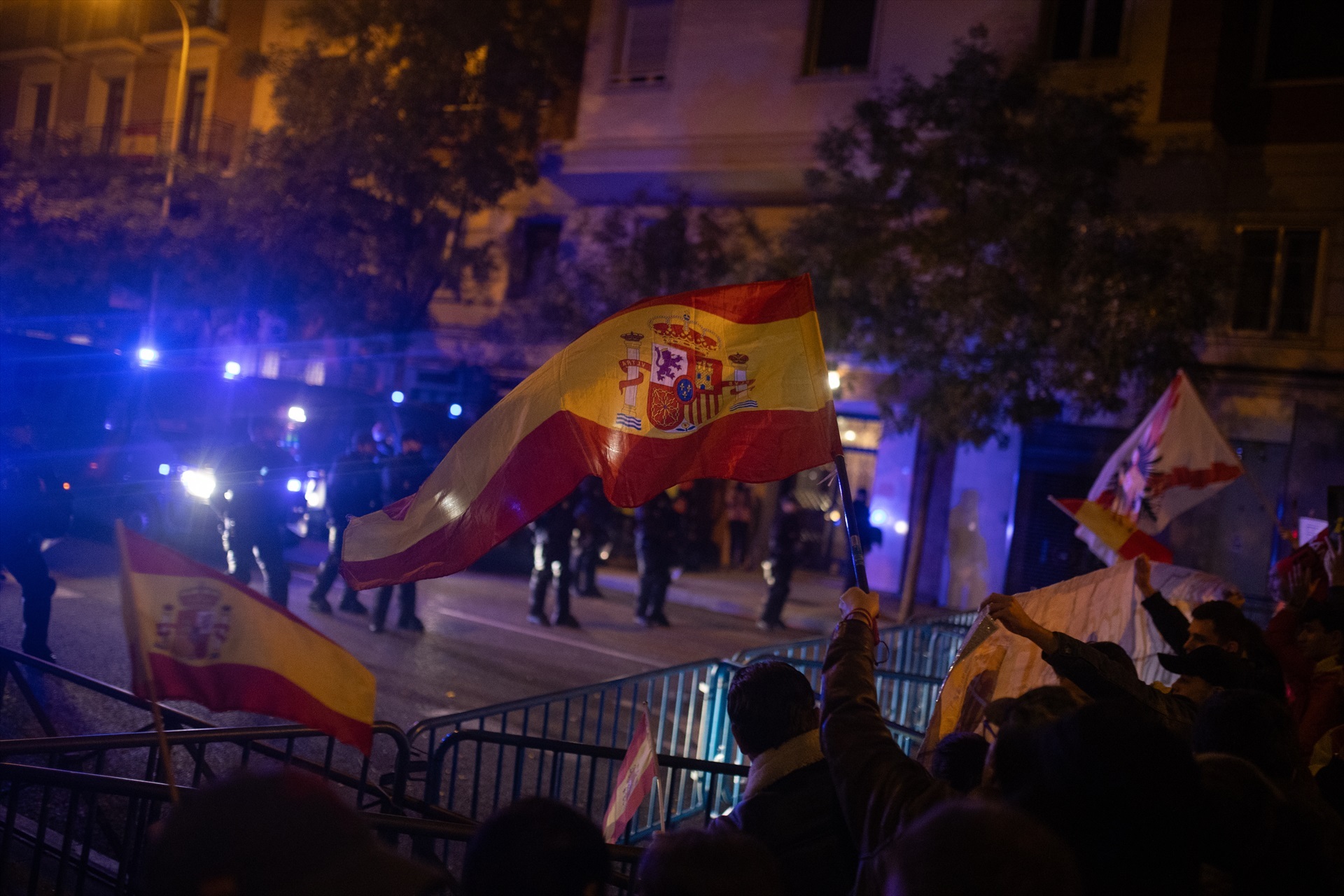 Décima noche de protestas contra la amnistía ante la sede del PSOE en Ferraz