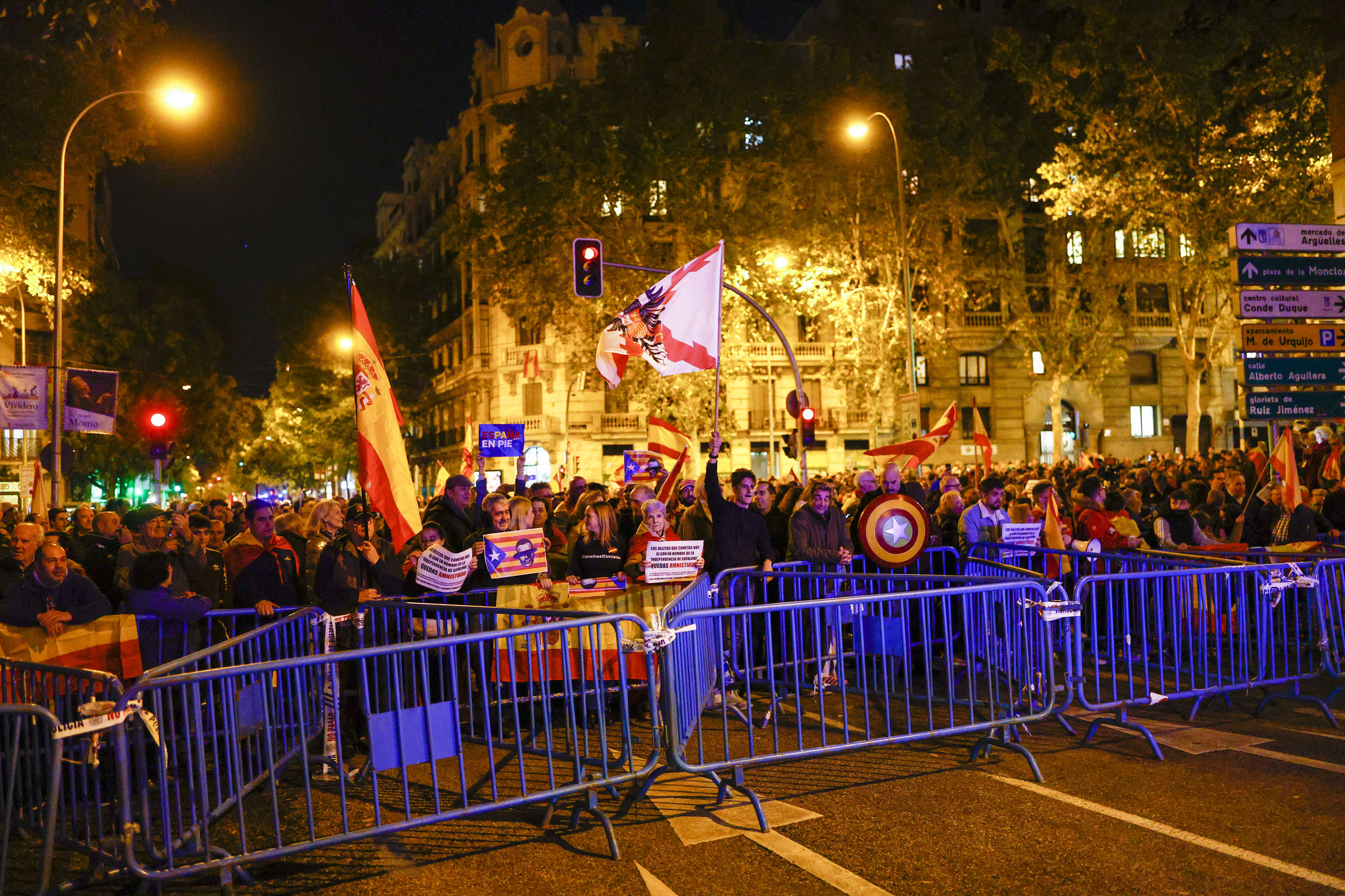Nuevas protestas en Ferraz en el día en que ya se conoce el texto de la ley de amnistía. De nuevo, líderes de Vox han acudido a la concentración.