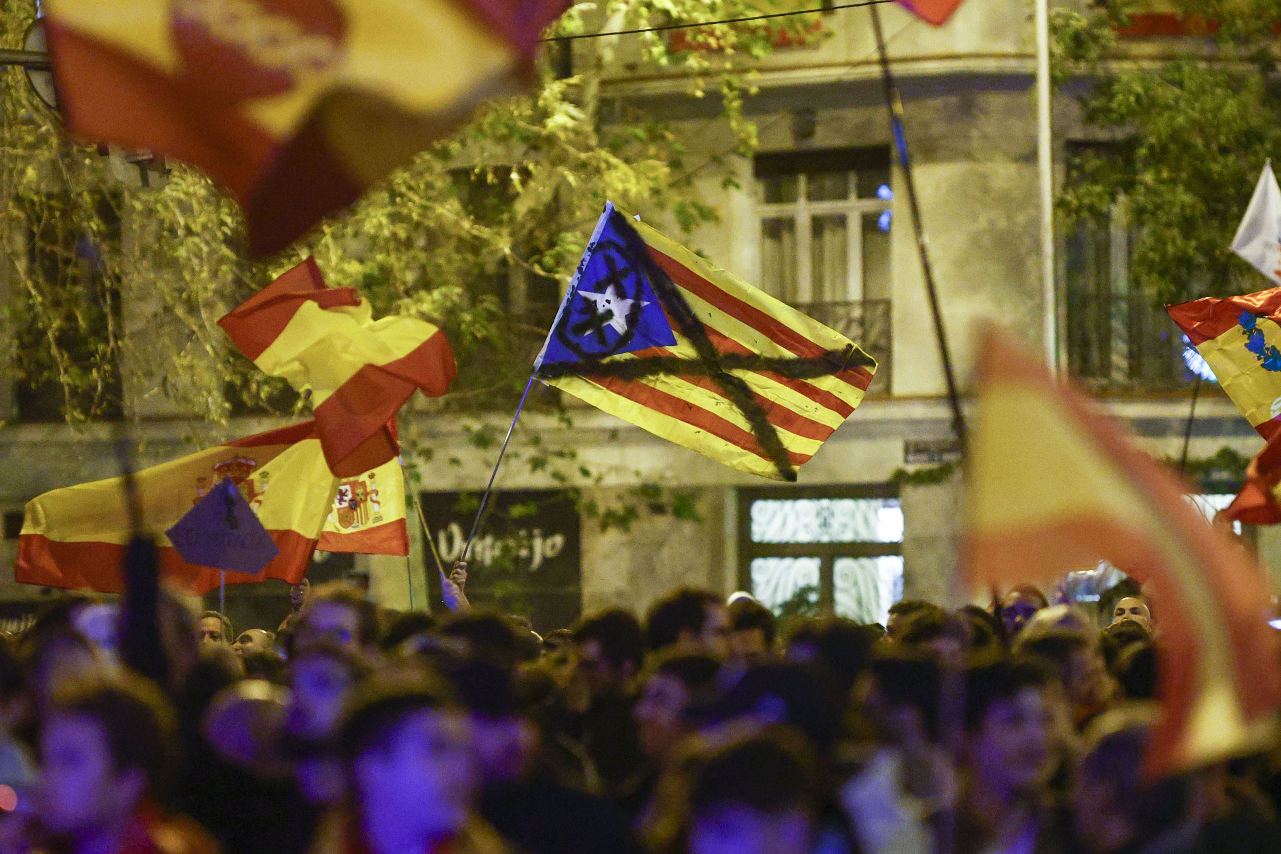 Una estelada tachada en la manifestación contra la amnistía en Ferraz.