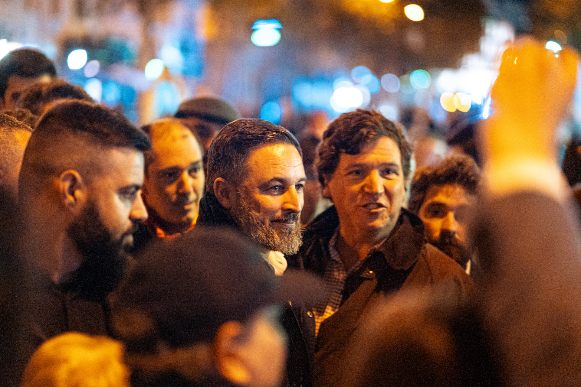 El líder de Vox, Santiago Abascal, con el periodista estadounidense Tucker Carlson