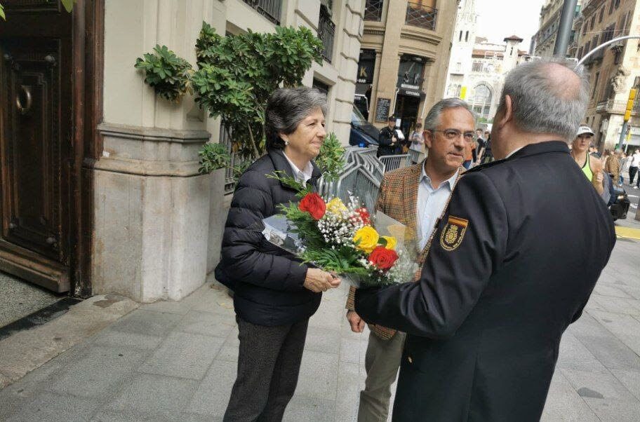 Sociedad Civil Catalana ha rendido este miércoles un homenaje simbólico al Cuerpo Nacional de Policía "por su férreo compromiso con los derechos y las libertades de todos los ciudadanos". La presidenta de la entidad, Elda Mata, acompañada del responsable de Territoriales de la entidad, Jorge Fernández-Argüelles, se han personado esta mañana en la Jefatura Superior de Policía de Cataluña, en Vía Layetana de Barcelona, para hacer entrega de un ramo de flores con los colores de la bandera nacional.