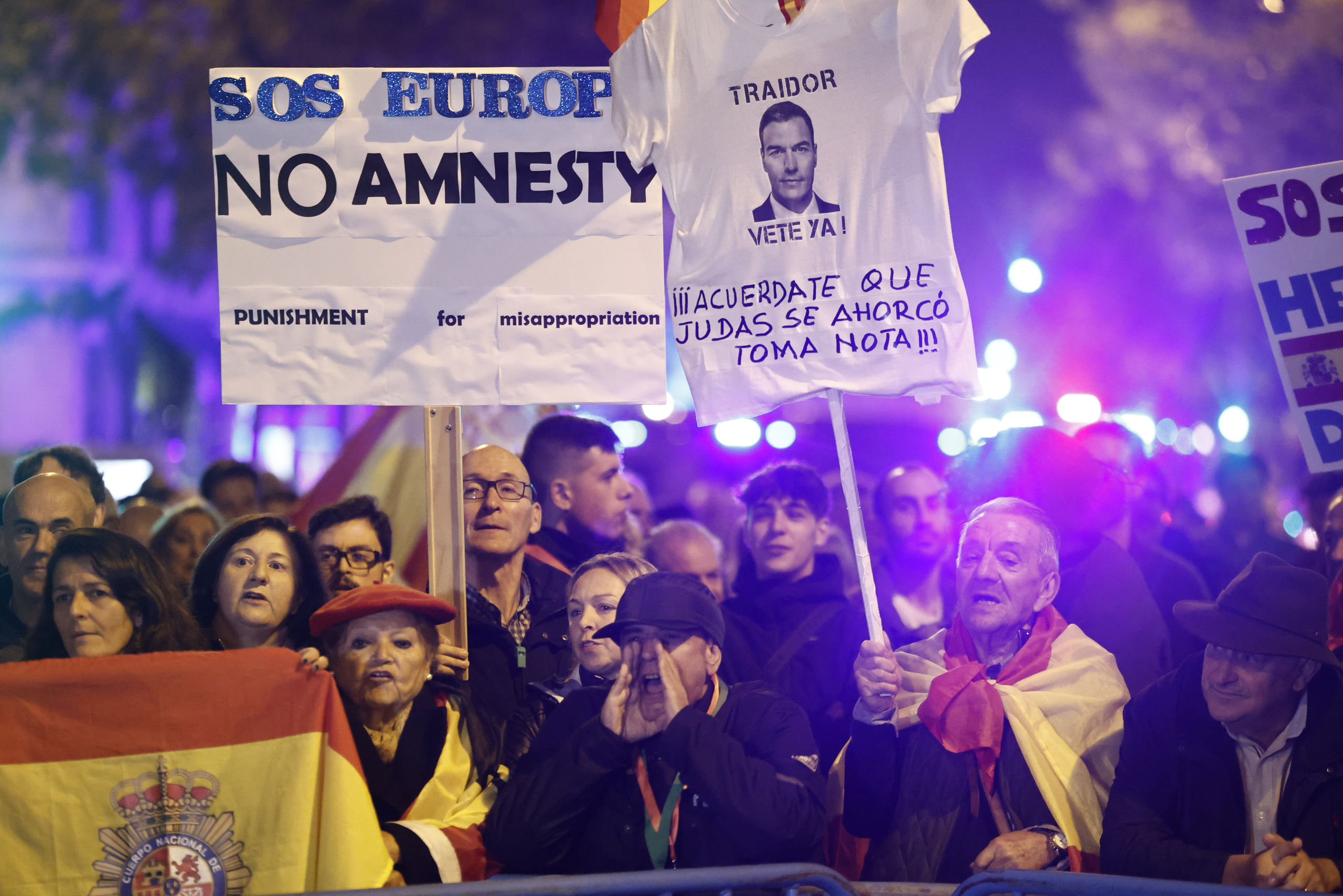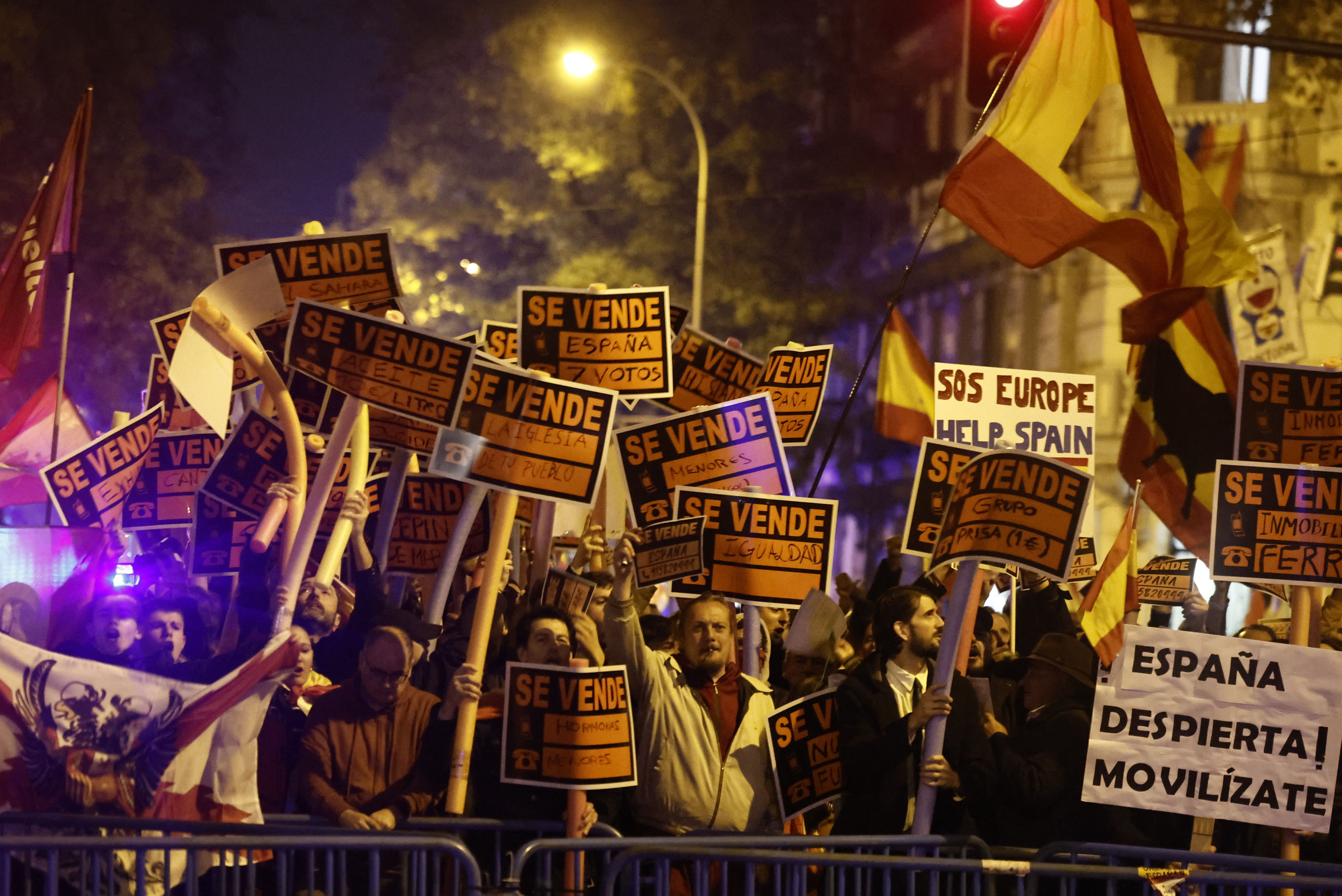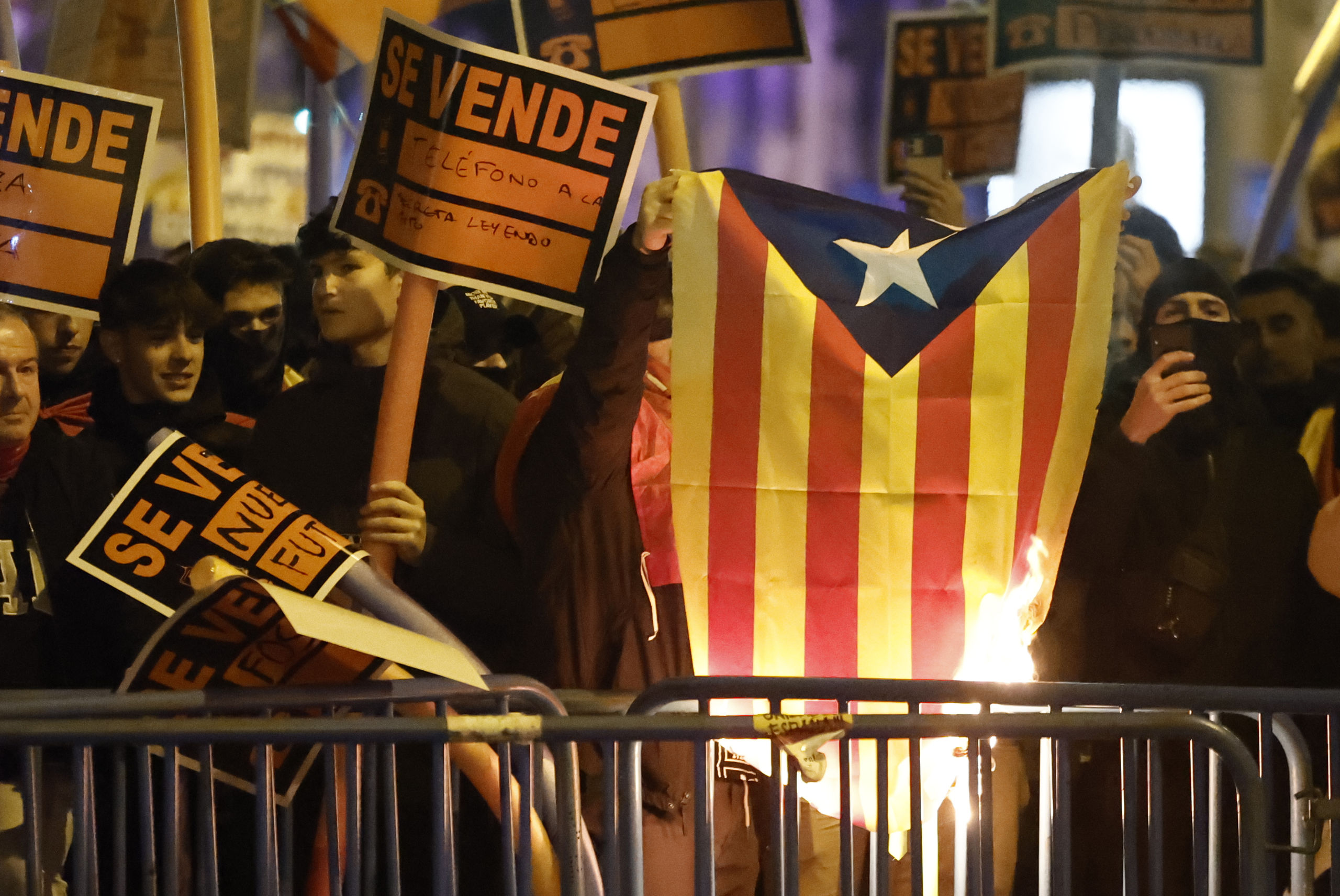 Por decimaquintanoche, cientos de manifestantes han acudido a las inmediaciones de Ferraz a protestar contra los pactos de Sánchez.