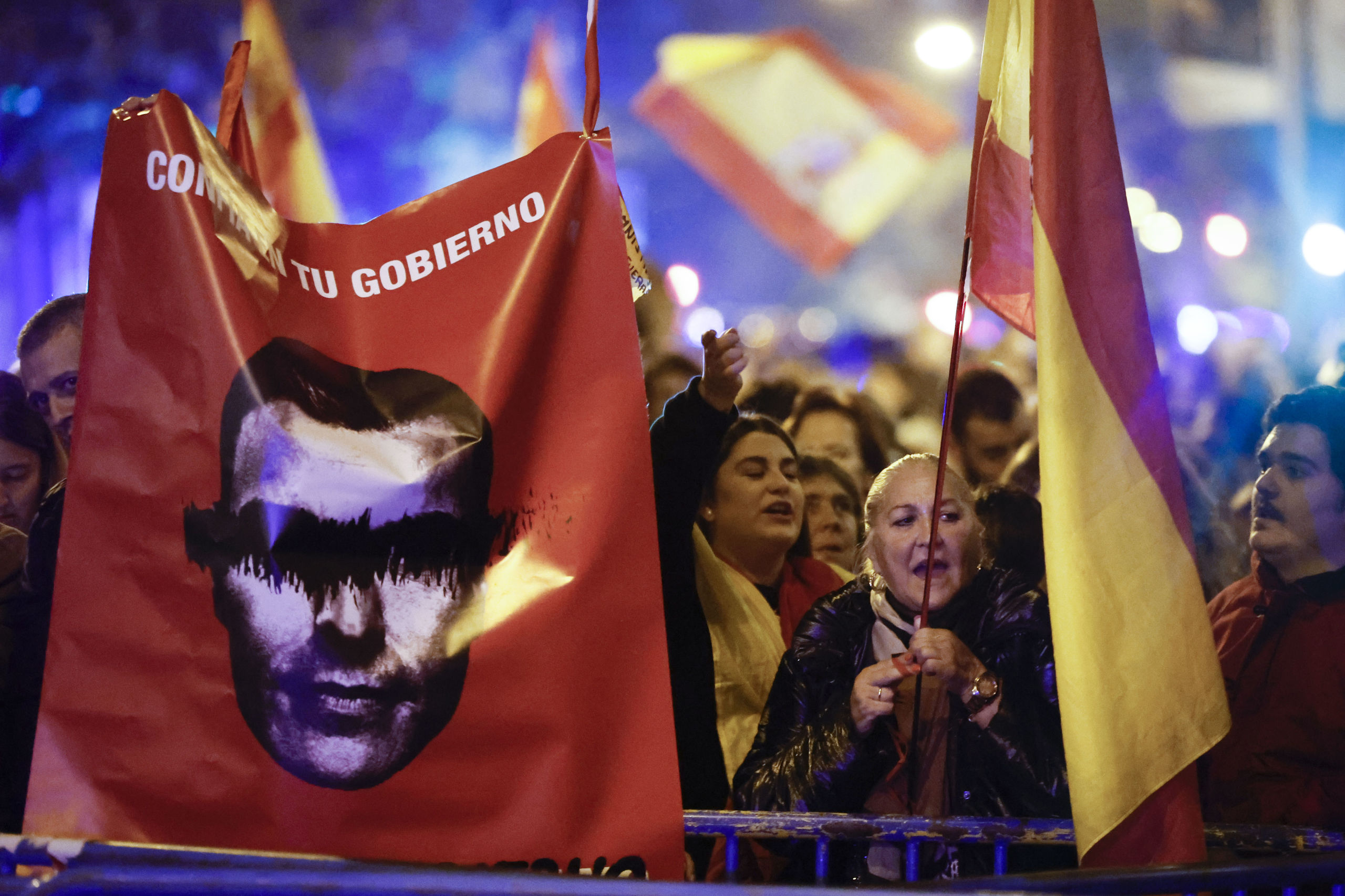 Nuevas proclamas contra Sánchez en la manifestación de Ferraz, que ha reunido a unas mil personas.