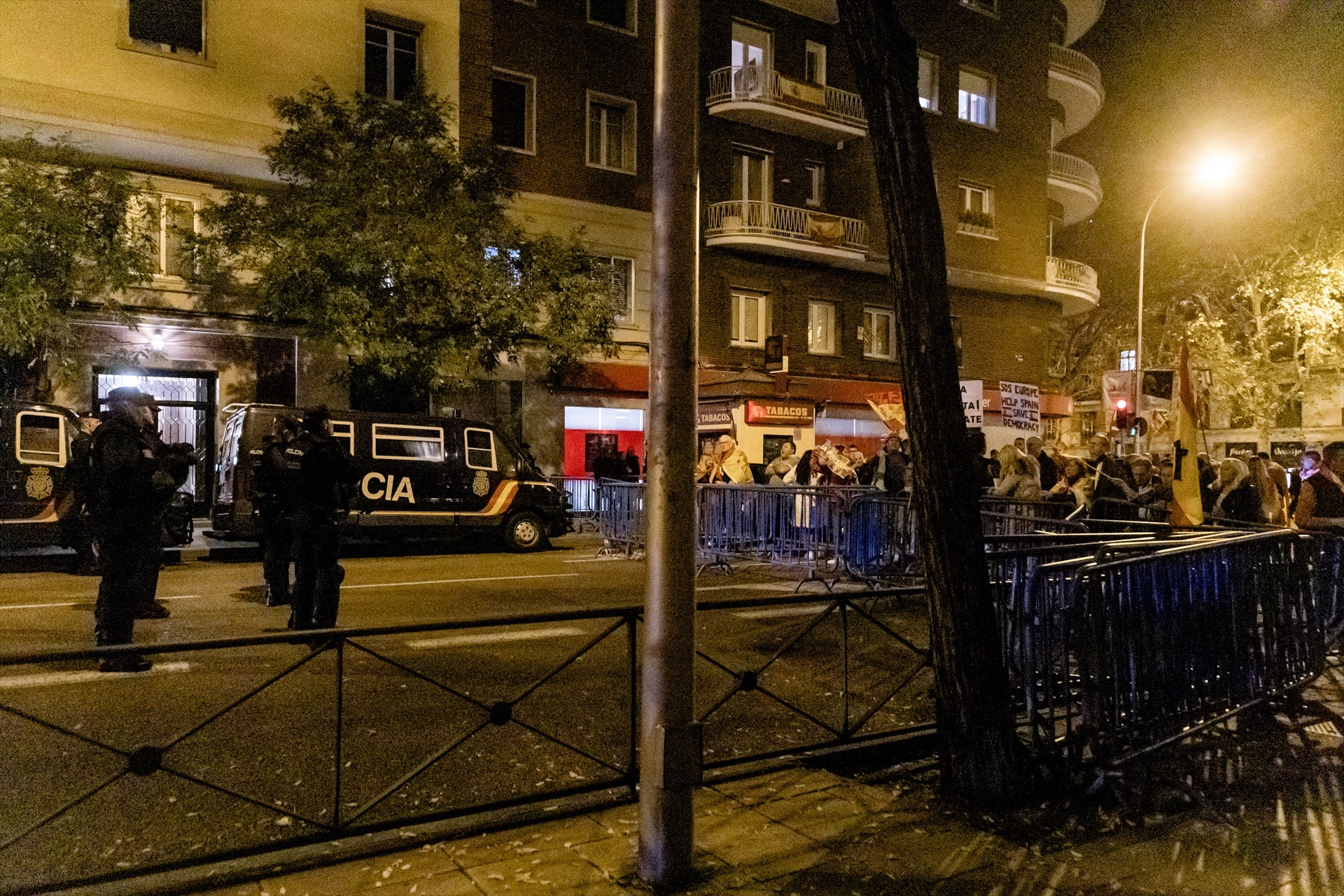 Fuerte dispositivo policial como todas las noches para proteger la sede del PSOE en Ferraz.