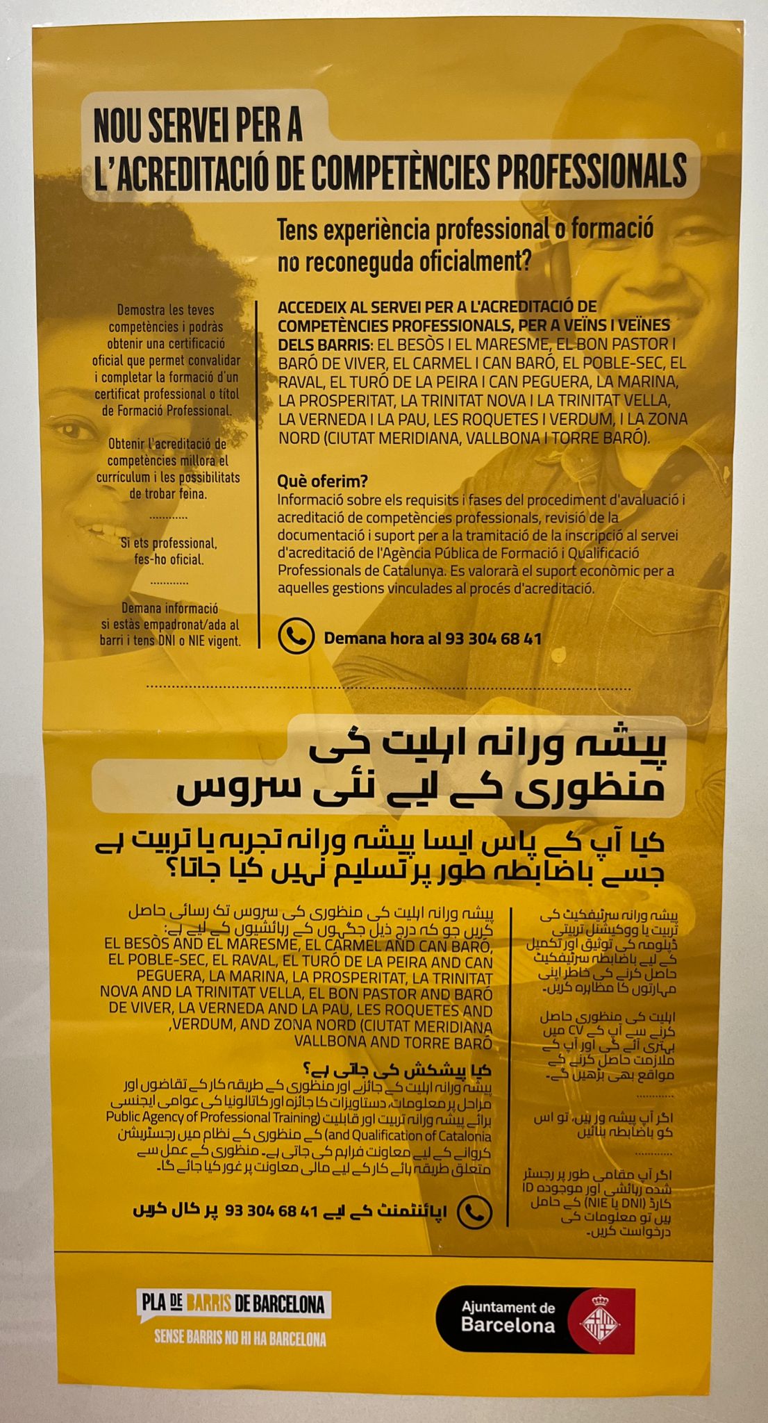 Sirera ha empleado también un cartel del Plan de Barrios, en su caso en el distrito de Horta-Guinardó para ejemplificar la exclusión del español. El cartel, destinado a la población inmigrante, da a conocer los servicios municipales para la homologación de títulos cursados en el extranjero y la acreditación de competencias profesionales. Sólo aparecen los idiomas catalán, árabe o inglés. Ante ello, Sirera reclama al alcalde que "toda la cartelería publicitaria, señalización y documentación de la ciudad esté, como mínimo, en las dos lenguas oficiales de Cataluña"