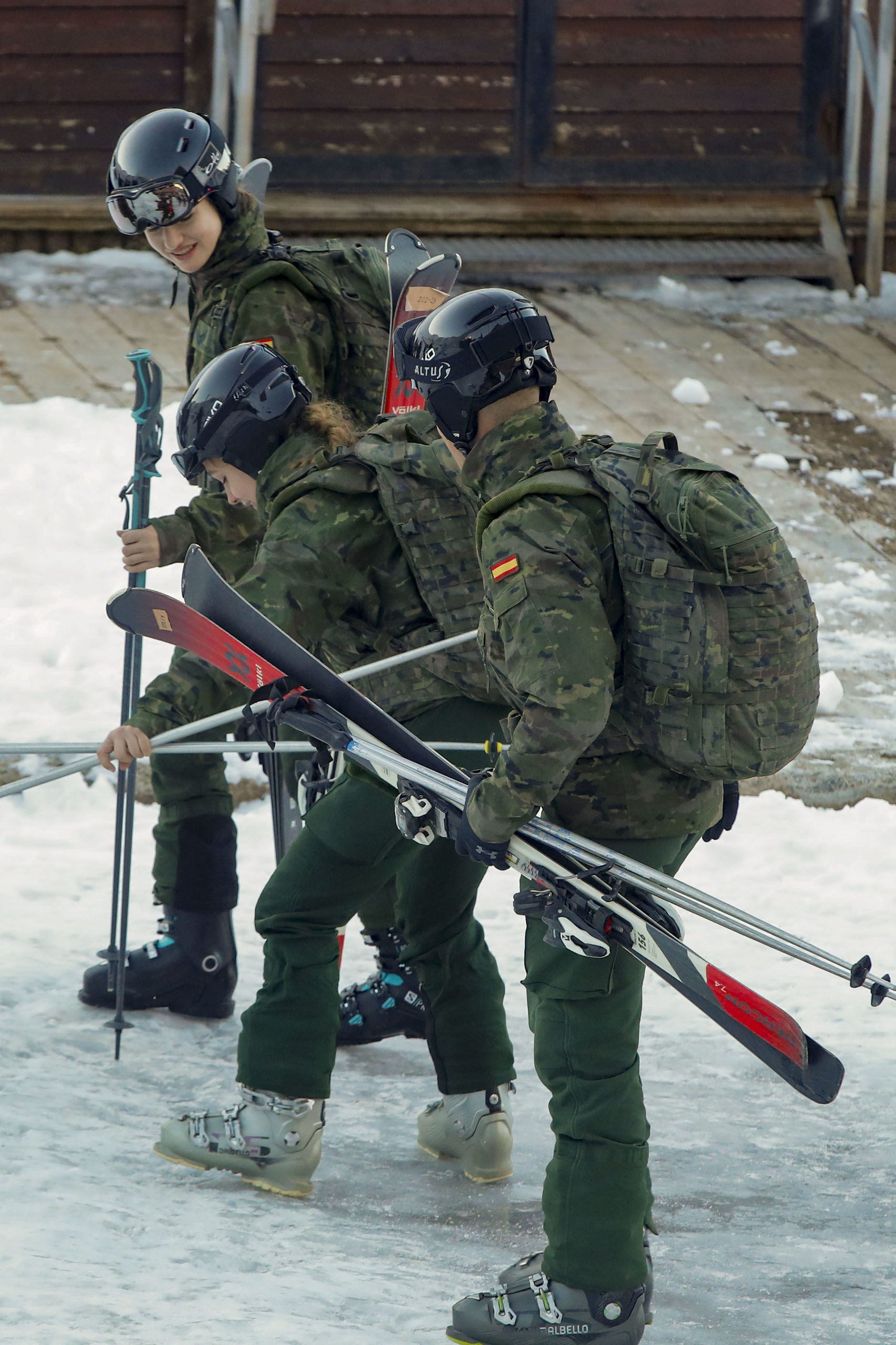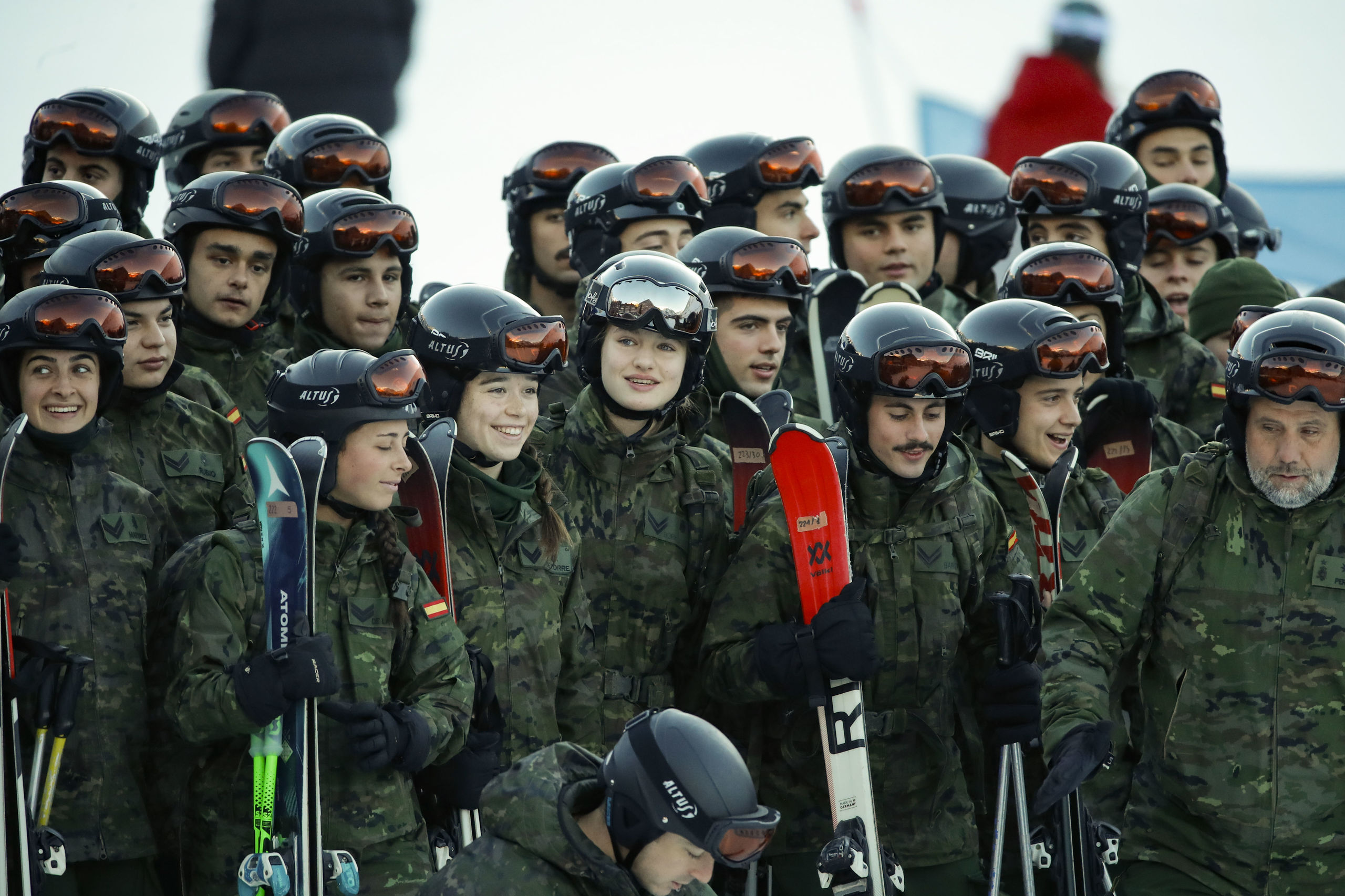 Leonor de Borbón, en el centro de la imagen, al empezar un ejercicio de esquí.