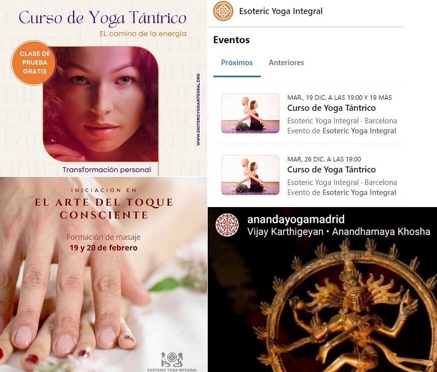 Teníamos la duda de si en Barcelona estaba ocurriendo lo mismo. Es decir, si seguían operando pero con más cautela tras la macrooperación llevada a cabo por la policía gala. Si introducimos en el buscador de Google el nombre del centro, Esoteric Yoga Integral, veremos que aparece como "cerrado temporalmente". Sin embargo, su web continúa activa y su actividad en redes sociales también. De hecho el mismo día -10 de diciembre de 2023- que nosotros publicamos el artículo sobre su homólogo en Madrid, ellos compartían un post en su muro de Facebook sobre "momentos astrológicos".