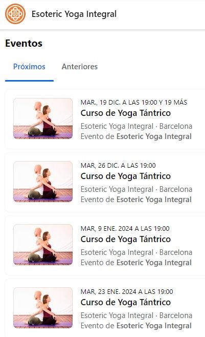 Una pista que nos llevó a bucear con más profundidad en su perfil y toparnos con una enorme cantidad de cursos de yoga tántrico "transformadores" que ofrecen en la Ciudad Condal y están agendados hasta el 30 de abril de 2024.