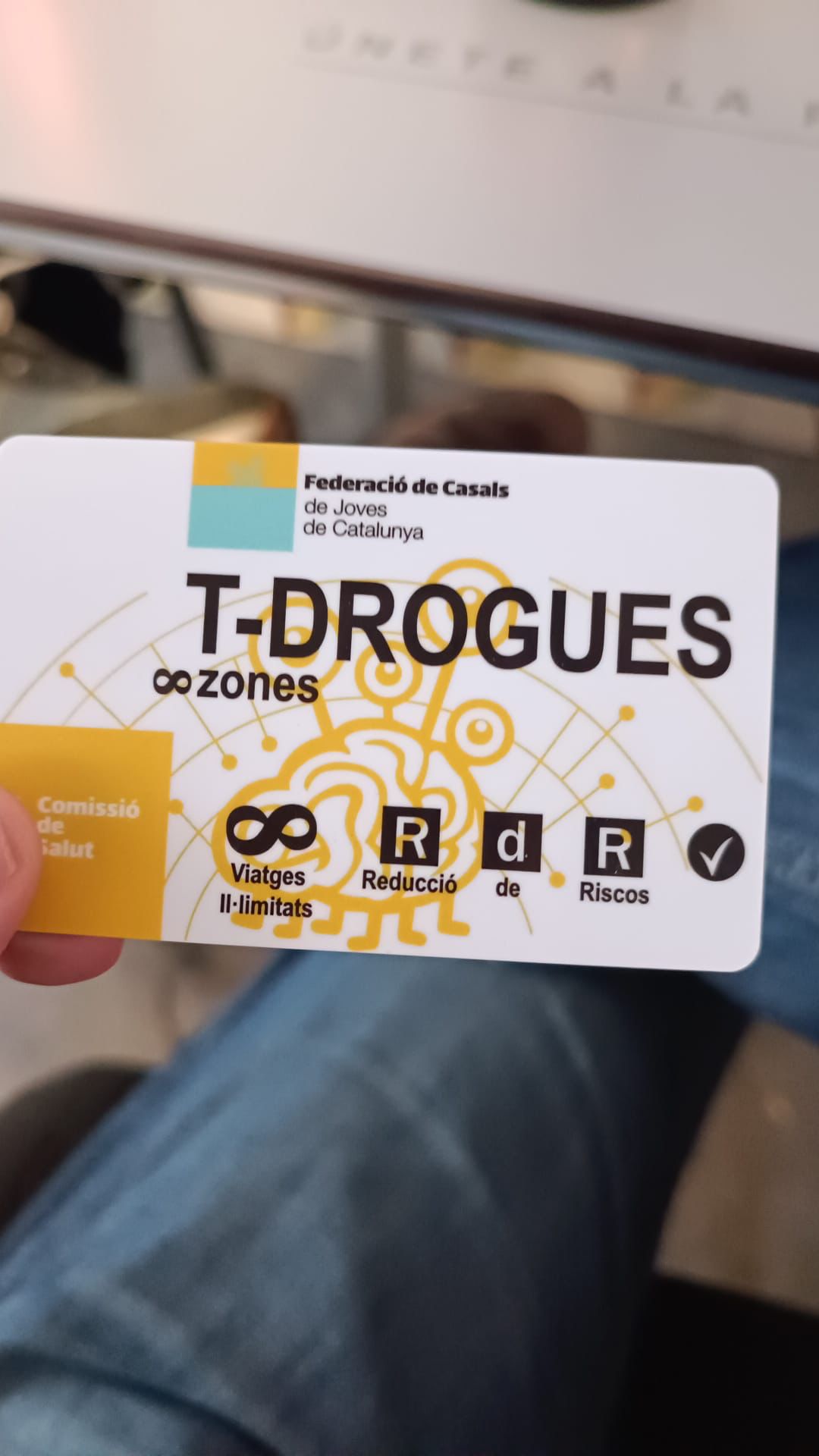 "Pica bien lo que vayas a tomar para una experiencia más segura". "Cambia de fosa nasal de tanto en cuanto". "Límpiate con agua tibia o suero la nariz después de cada viaje". "Los 'turulos' son de uso personal e intransferible". Esas son las instrucciones que contiene la tarjeta "T-Drogues", un falso abono de transporte como los que se utilizan en el Metro y los autobuses de Barcelona y que ha creado y reparte la "Federació de Casals de Joves de Catalunya".