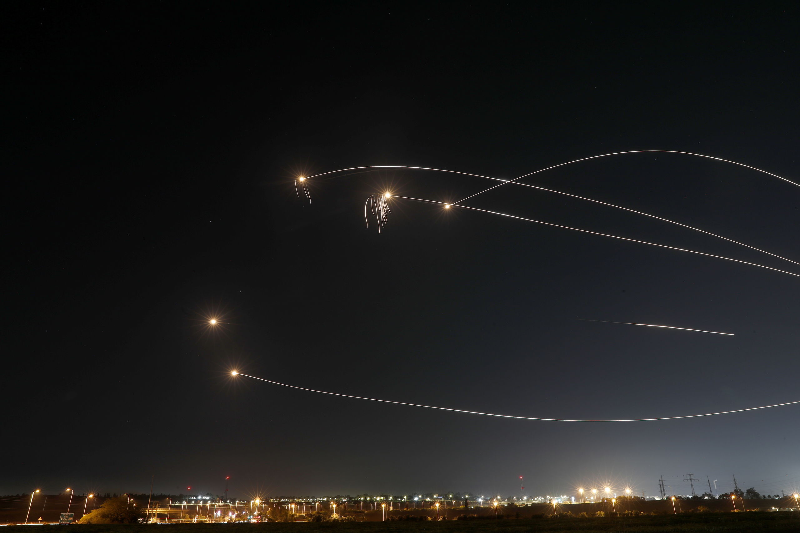 El 7 de octubre decenas de terroristas de Hamás traspasaron las fronteras de Israel para atacar, violar y torturar a civiles en un ataque sin precedentes. En la fotografía, cohetes lanzados desde Gaza son interceptados por la Cúpula de Hierro de Israel.