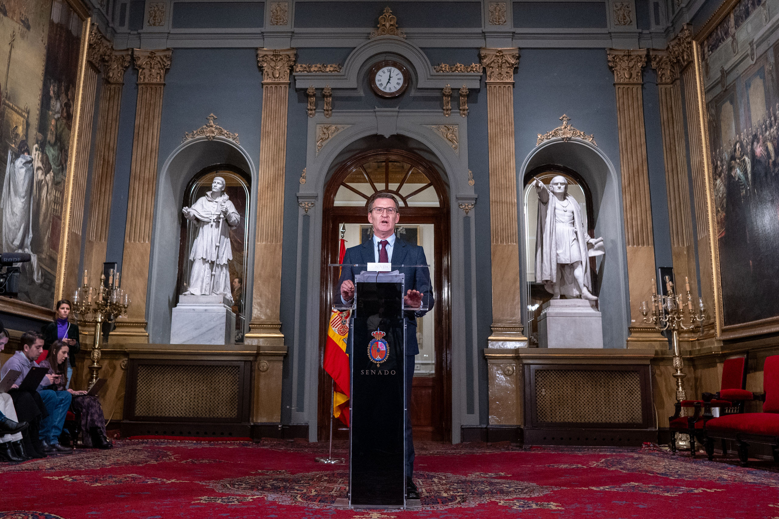 "Me siento atónito ante la situación de mi país y me pregunto ¿esto qué es?", afirmó en esa misma comparecencia en la que estuvo acompañado por la plana mayor de su dirección. "Como la mayoría de los españoles, creo que mi país no se merece este esperpento", dijo un líder del PP que acusaba a Pedro Sánchez de "mercadear con los derechos de todos los españoles, sin saber los españoles lo que hemos entregado".