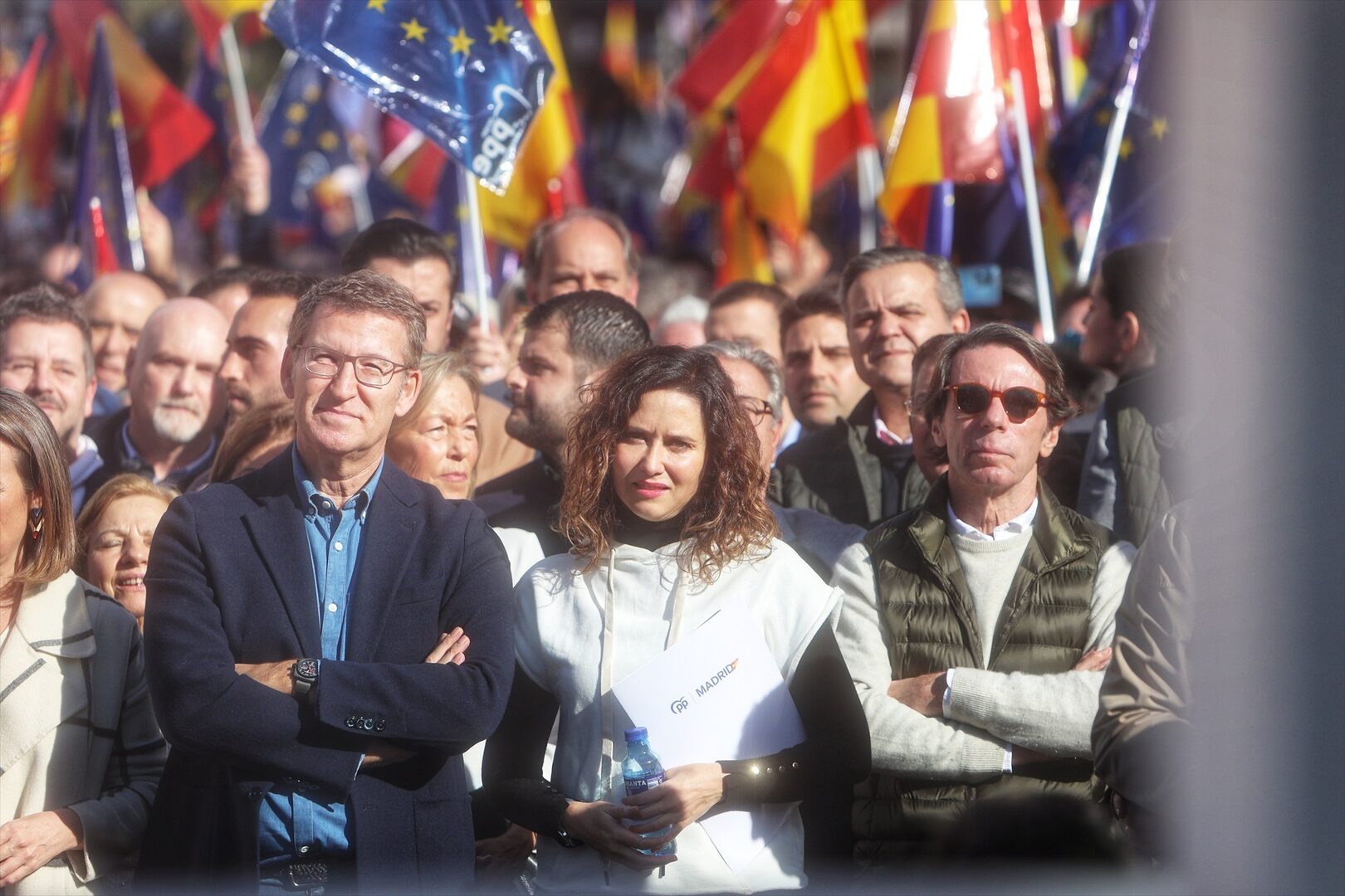 Ante más de 70.000 personas según el PP, 45.000 según la Delegación del Gobierno, Isabel Díaz Ayuso anunció este domingo en la Plaza de España de Madrid que "la libertad se abre camino" y el final de Pedro Sánchez "se acerca a gran velocidad". "Esta pesadilla tiene los días contados", sentenció la dirigente madrileña en su intervención.