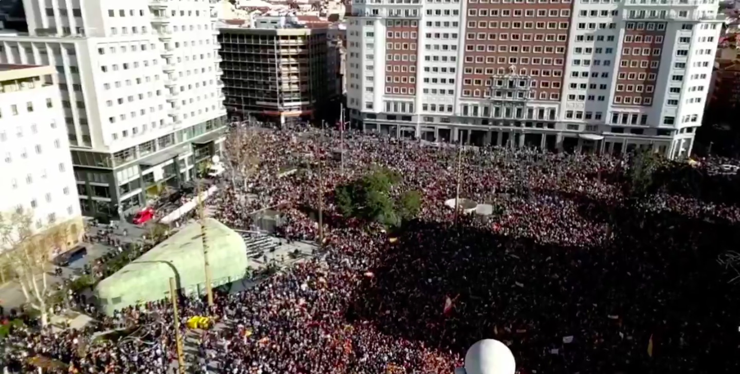 Así lucía la Plaza de España de Madrid en la concentración del PP contra la amnistía.